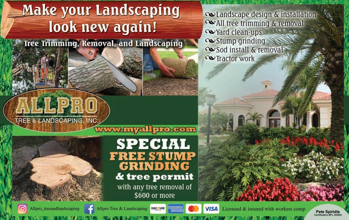 FREE ESTIMATES! 727-742-8362 1200 square-foot minimum job requirement for seal work AFTER BEFORE Ask About Our Senior And Veteran DISCOUNTS! Call 727-742-8362 for details! PAVER SEALING AND CLEANING • COLOR ENHANCEMENT • SEAL REMOVAL & STRIPPING • MOLD & MILDEW REMOVAL • ANY SIZE REPAIRS • SAND & SEAL Serving Pinellas County and Parts of South Tampa PINELLAS COUNTY’S PREMIER PAVER & CONCRETE SEALING SERVICES! MAKE YOUR PAVERS SHINE LIKE NEW! WE CAN REPAIR BROKEN & SUNKEN PAVERS! AFTER BEFORE JRPressureWashService.com LICENSED & INSURED Color Enhancing & Color Additive Options (As seen above) MATTE SEMI GLOSS, HIGH GLOSS AND NATURAL FINISH AVAILABLE PRESORT STANDARD U.S. POSTAGE PAID BEST DEALS BOOK 1226 N. Tamiami Trail, Sarasota, FL 34236 To Advertise Call 1.844.600.8846 Pinellas Vol 7 No 6