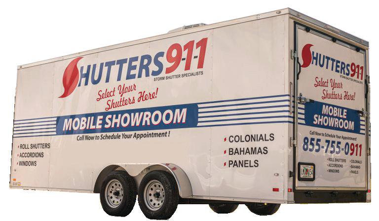 Add Protection & Security Lower Insurance Cost Add Value to Your Home 941-265-8585 www.Shutters9-1-1.com Serving Sarasota County 328 Tamiami Trail, #A Port Charlotte, FL 33953 LIFETIME WARRANTY ON PARTS & LABOR 30 YEARS EXPERIENCE HUTTERS 911 ACCORDION SHUTTERS • BAHAMA SHUTTERS • IMPACT WINDOWS • ROLL SHUTTERS • STORM PANELS VETERANS & FIRST RESPONDERS APPRECIATION DISCOUNT 5% OFF WE COME TO YOU! MOTORIZED INSECT/PRIVACY ROLL SCREENS ADDITIONAL Florida Contractor License: CBC12654189