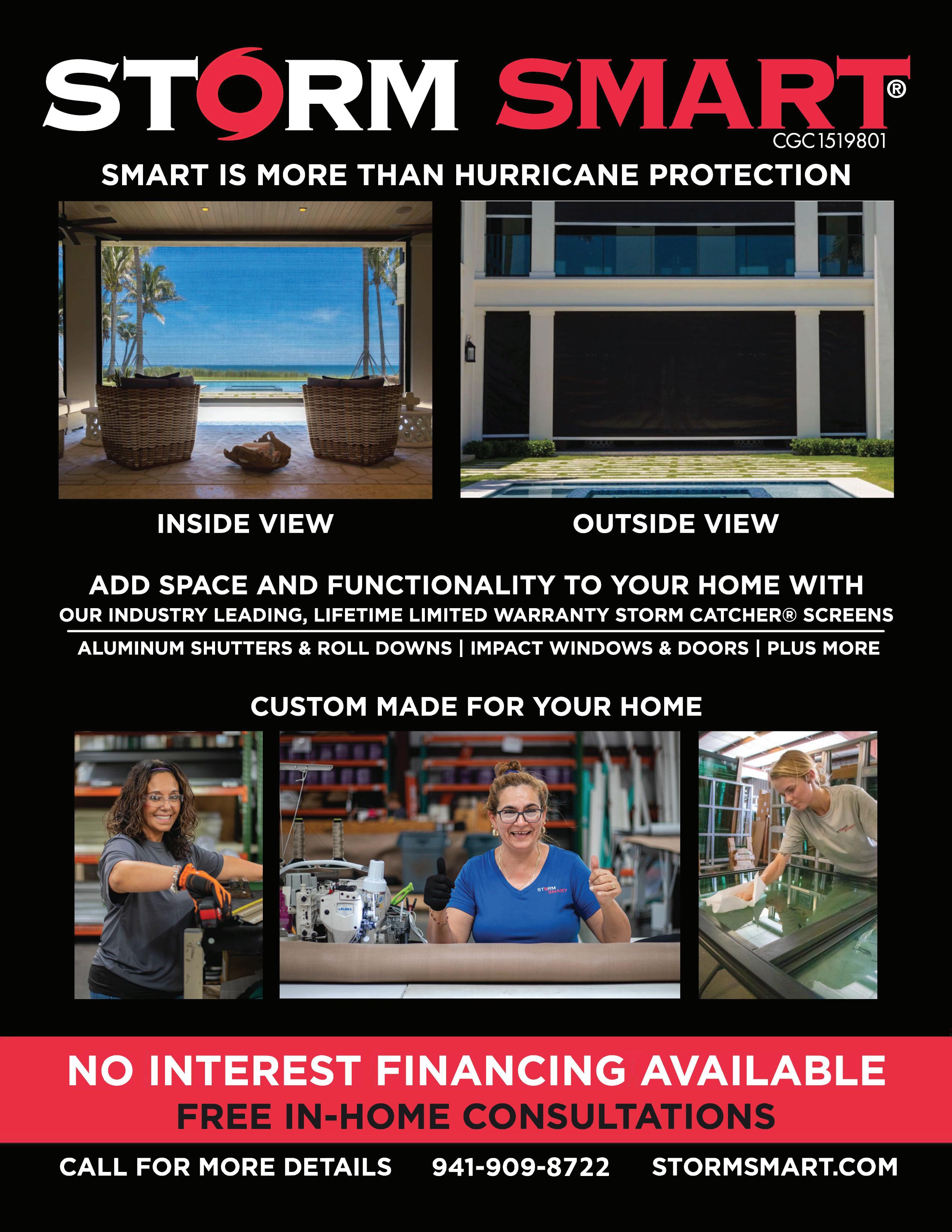 Call 941.229.1411 for your FREE Quote! NEW INSTALLATIONS May not be combined with other offers. Must present coupon. Exp. 11/15/22 Locally Owned & Operated • Lic# SCC131152254 Fall Sale Hurricane Screens & Shutters • Accordion Shutters • Bahama & Colonial Shutters • Retractable Awnings & Shade Screens Storm Protection Shutters Security Shutters Accordion Shutters Motorized Insect Screens Hurricane Screens YOUR SHUTTERS, AWNINGS & SCREENS INSTALLATION SPECIALISTS Motorized Retractable Awnings SHOWROOM NOW OPEN BY APPOINTMENT ONLY Visit Our New Location! 6620 19 th St East, Suite 103 Sarasota, FL