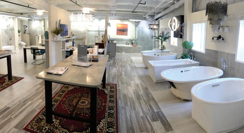 Our 20,000 sf facility includes our warehouse, installer testing and training spaces and our huge designer showroom with full range of tile, cabinetry, plumbing and electrical fixtures, quartz countertops, easy-to-clean acrylic, plumbing and electrical fixtures, even custom glass doors…