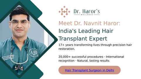 Dr. Navnit Haror is a gold medalist dermatologist and international hair transplant surgeon. He is also the founder of Dr. Haror’s Wellness, the best hair transplant clinic in Delhi, India. He is certified by the Delhi Medical Council (DMC), the Medical Council of India (MCI), and the Indian Medical Association (IMA). He is dedicated to advancing the science and art of aesthetic surgery. He holds fellowships in Hair Transplant and Dermatosurgery and has completed advanced training in Lasers and Aesthetics from Singapore, along with specialized training in facial fillers at the Allergen Medical Institute.