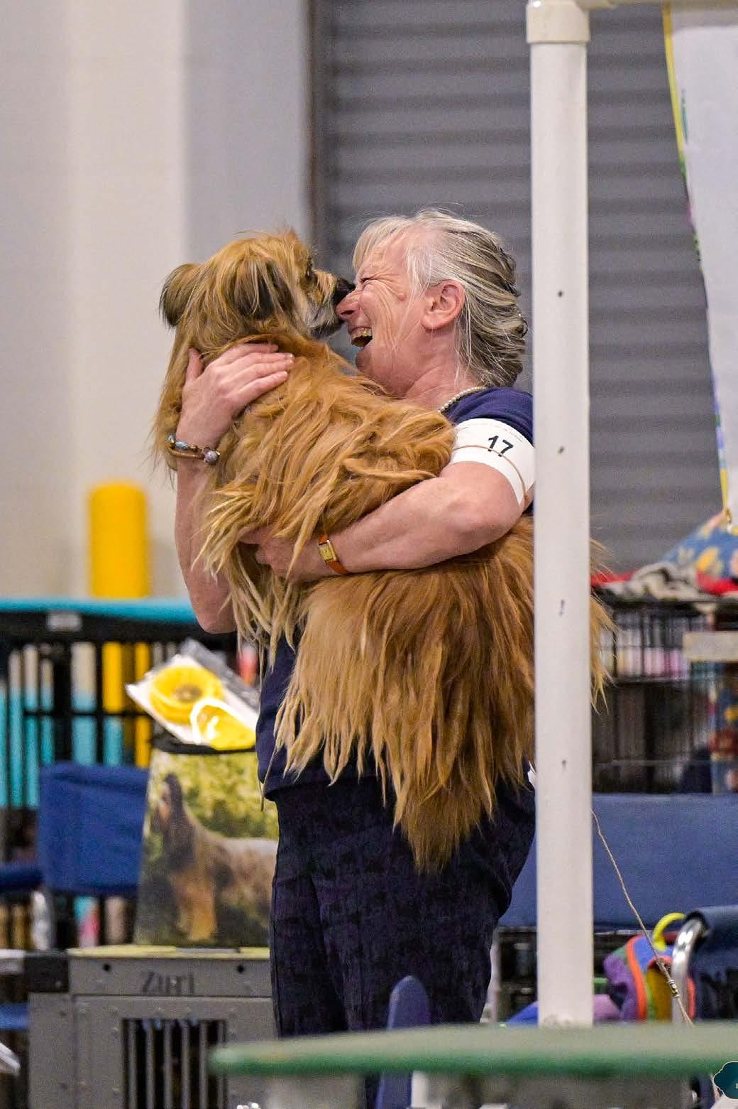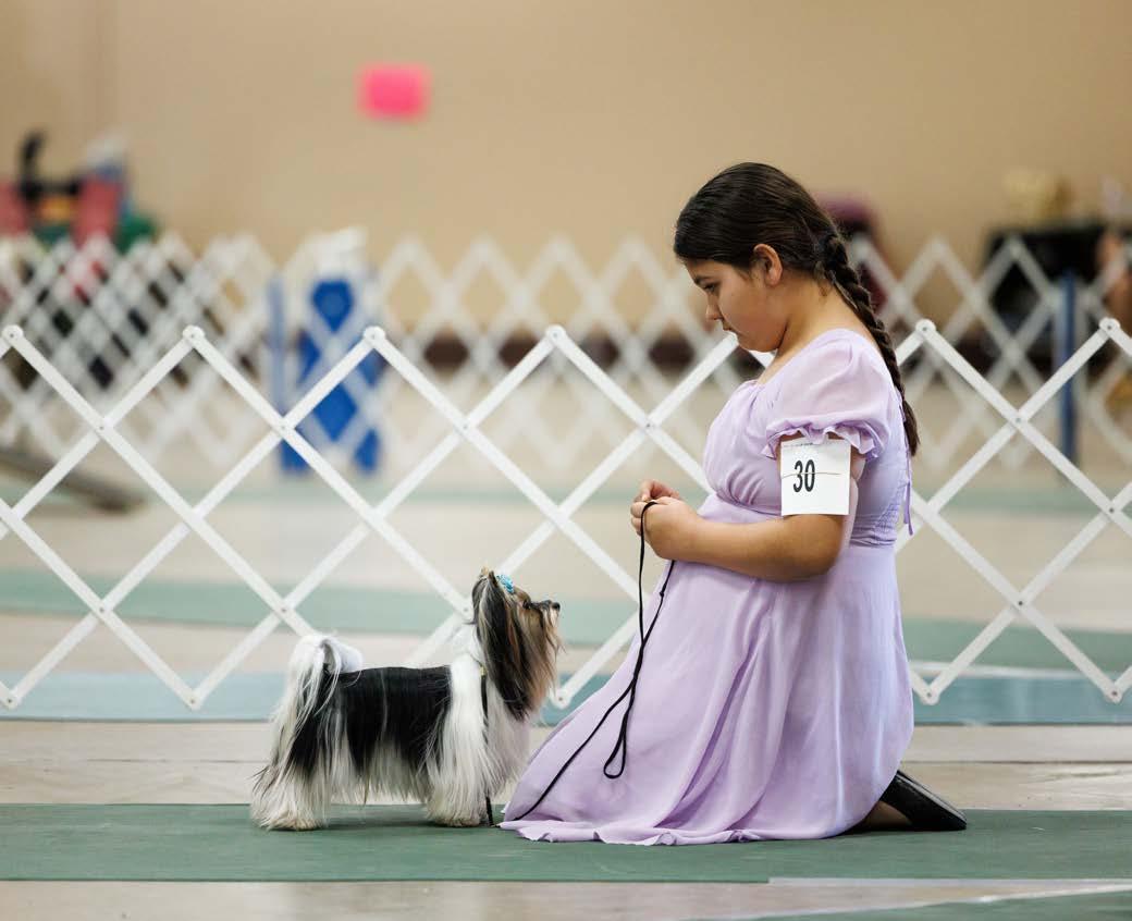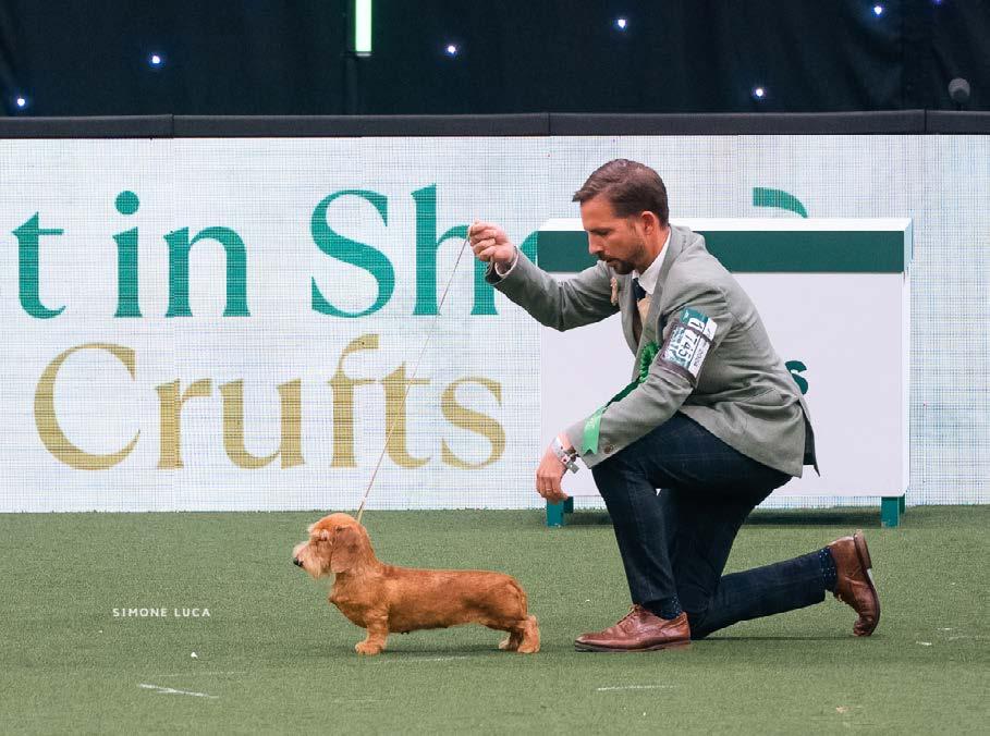 While I’ve had the opportunity to show numerous dogs in breed competition, I’d consider my greatest achievementstobewithmyIrishWolfhound,Winn,and my Wirehaired Dachshund, Garrus. I guided Winn as a puppytothreeconsecutivemajorwinsoverasignificant specialty weekend, securing his championship—a challenging feat considering I was just twelve years old, handlingadogoutweighingmebyonehundredpounds! Garrus, my Wirehaired Dachshund, has brought me the most success in the breed ring, earning several group placements, including a memorable Group Second under Dachshund authority, Mr. David Peat.