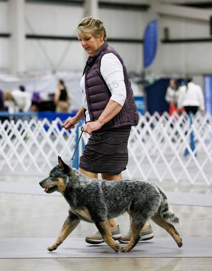 The entire experience has been amazing. It’s incredibly rewarding to embark on a journey as a complete beginnerandlearnsomethingneweverytimeIstepinto the ring. One of the most memorable moments was my first show last June in Merlin, Oregon. We were driving fromSouthernCaliforniatoourpropertyinWashington to oversee our home construction. I asked Gabriel if it would be okay if I tried showing my dog at a show along the way. He replied, “Absolutely! You’ll be fine! Just call if you have questions or need anything... and keep me posted.” However, there was no cell reception at the show, so I couldn’t communicate with Gabriel at all. I just did my best to figure it out. We had a blast, made many new friends, and at the end of the three shows, we reported back to Gabriel and Ivonne that we went G1, G2, and G2 in the regular groups, as well as sweeping the NOHS Groups, along with a BIS and a RBIS.