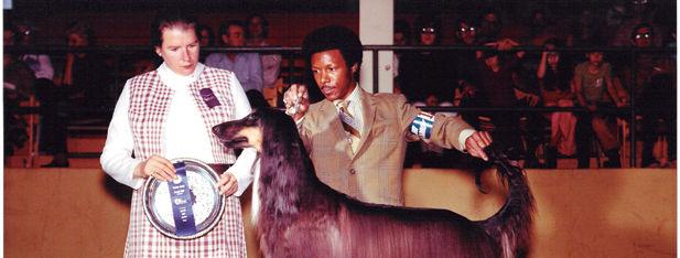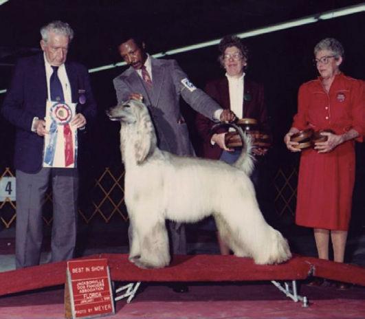 My first top dog, who put me on the map was Apollo, Ch. Khayam’s Apollo, by winning the Hound Group at Westminster in 1973. I wish I would have known then what I knew 20 or 30 years later when I had Apollo. Duringthosetimestopdogswereownedbythosewho could afford to campaign a dog. Apollo was owned by Dr.DoyleRogers,andhesoldhimtoanAfghankennel, with a young talented handler. At that time, I could not afford to buy Apollo but certainly wished that I could have. I showed many Best in Show winning