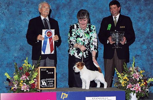 One of my best dog show memories would have to be going Best in Show with my Welsh Ch. Cory Ridge Talisman and going Best Brace in Show with Ch. Cory Ridge Talisman and my first homebred champion Ch. Kymric Bounce the Rock in the same day in 1981. Another great memory is going Best in Show from the classes with the Russell Terrier GCHG Goldsand’s Columbus. He went on to win 34 BIS and 38 RBIS in less than 18 months. He is still the top winning Russell of alltime.Thereweremany otherspecialmomentswith Columbus with memorable wins under well respected judges.