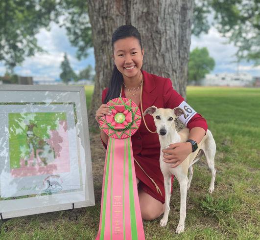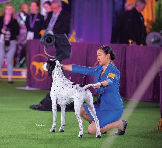 Yes!Iamsoluckytolearnfromsomeoftheabsolutebest in both breeds. In Whippets I get mentored under Lori Wilson, Terri Erickson, and Lori Lawrence. In Pointers, Lydia Frey and Tina McDonnell mentor me. Even though theyarelocatedontheEastCoast,andmyfamilyandIon the West Coast, they are always a text or call away. They were also kind and lent their Pointer Fidele to come live with us and be my junior’s dog. I am forever grateful for the opportunities Tina and Lydia have provided.