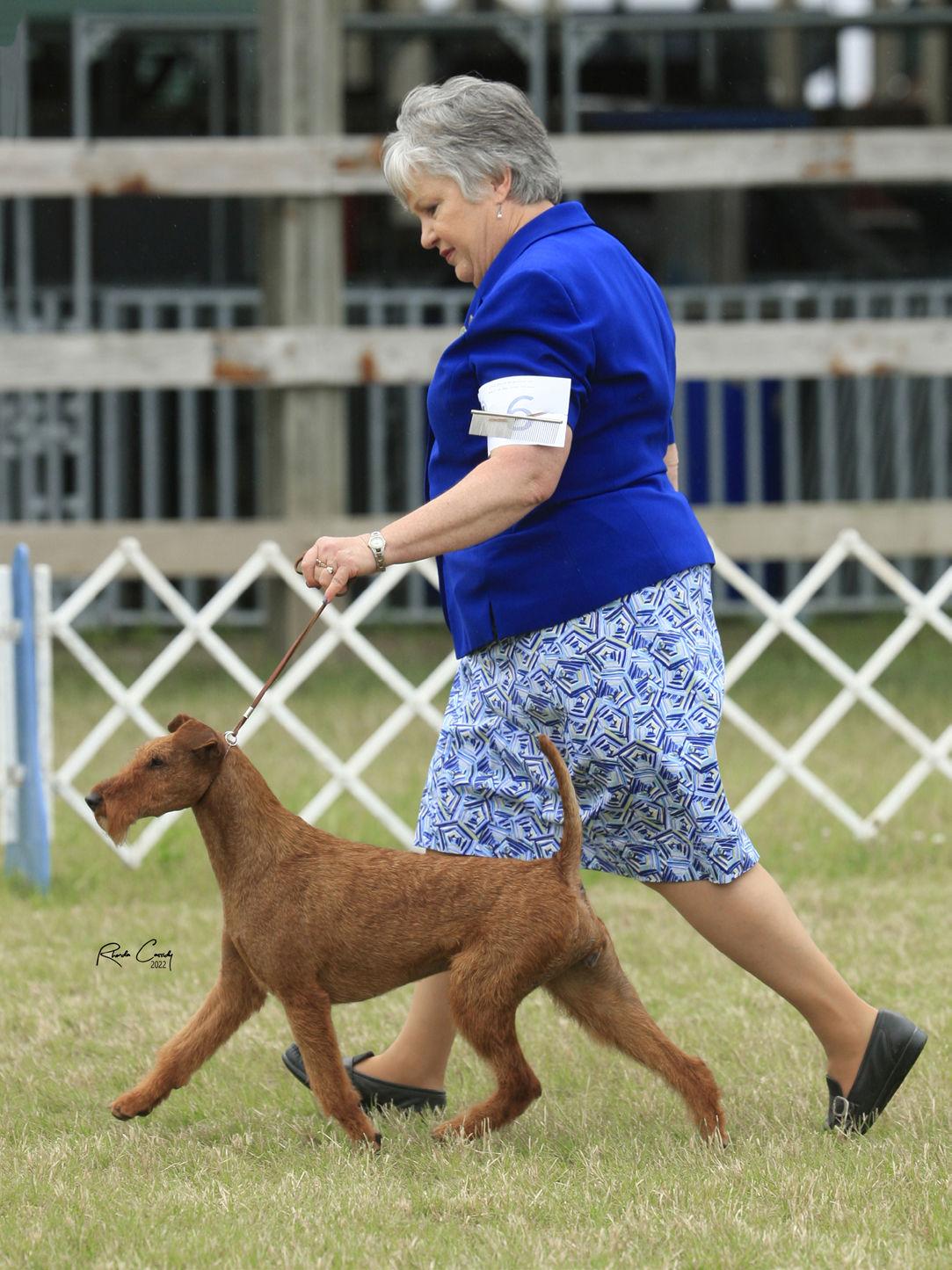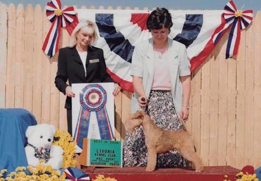 Some other special moments were with Irish Terrier Ch. Kickerry Harmony of Kalaney going BOB at the national specialty under judge Anne Rogers Clark, BOB at Montgomery under judge Edd Bivin (I was 7 1/2 months pregnant at the time), BIS under judge Lydia Coleman Hutchinson as well as many other wins.