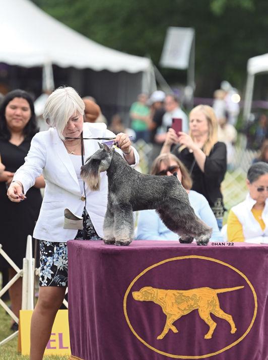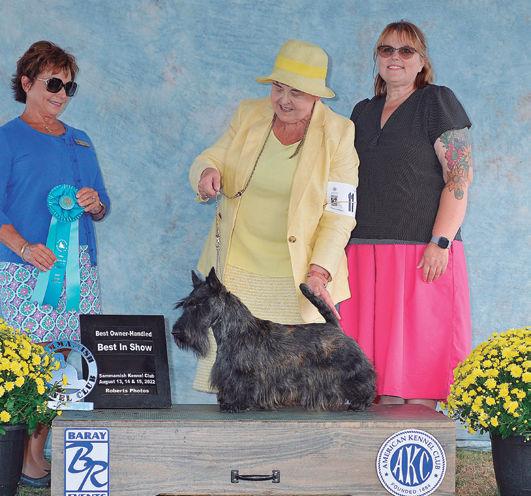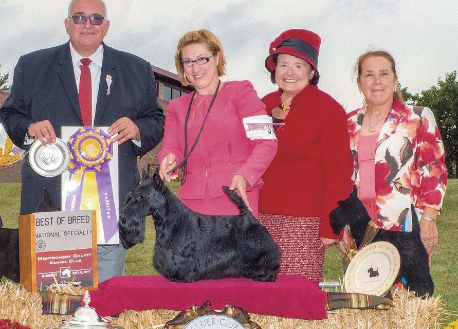 A:IhavejudgedScottishTerriersfor25years.Ihadthe pleasure of seeing BIS Ch. Braeburn’s Close Encounter and I got to judge BIS Ch. Roundtown Mercedes of
