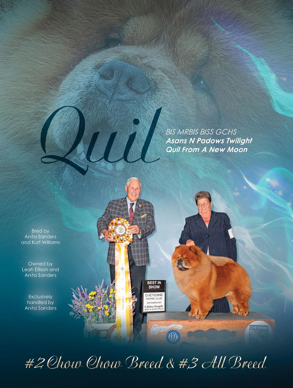 I do not have many hobbies outside of dog showing andbreeding. Iamafull-timephysiciansothatkeeps me busy enough. I also take care of my 95-year-old mother at home, and she is understanding when I attend dog shows on weekends.