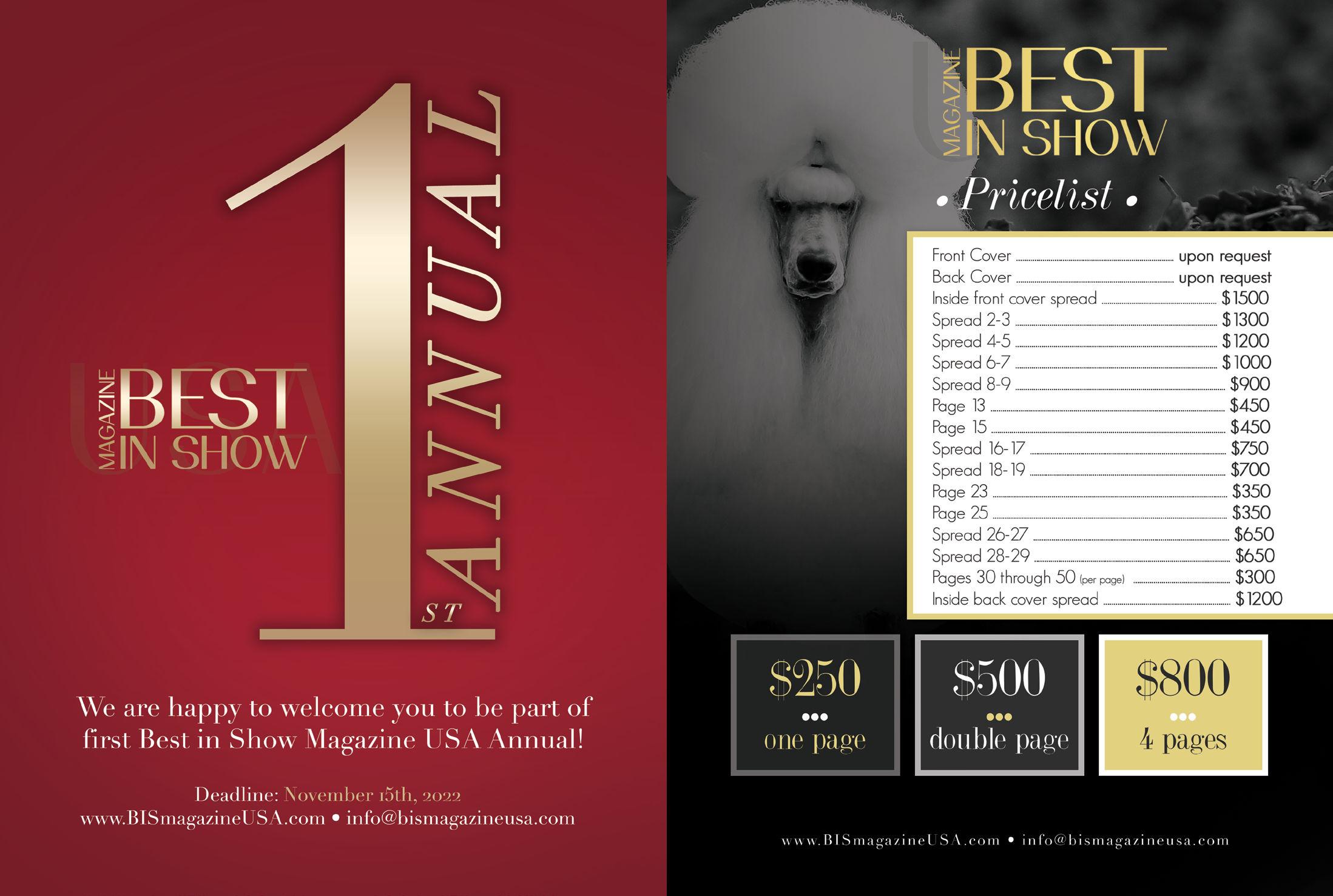 I want to thank the Best in Show magazine for inviting me to do this interview. I wish you continued success with your magazine and