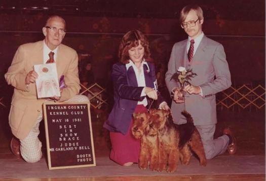 When I was growing up my mother always insisted that we have purebred dogs. I started showing our miniature poodle, Perry, in 4-H. He was not show quality, but he was a good obedience dog and a great family pet. He got a Dog World Award for his CD which was a big accomplishment in the 1970’s. I was soon hooked on going to dog shows. I was supposed to get another Poodle, but the bitch missed. One of the 4-H leaders said I should raise a Leader Dog for the Blind puppy. He was a wonderful black Lab. When I was taking him to training class, I met my first Welsh Terrier and I thought she was the best breed ever. I bought her and from then on, my heart belonged to terriers.