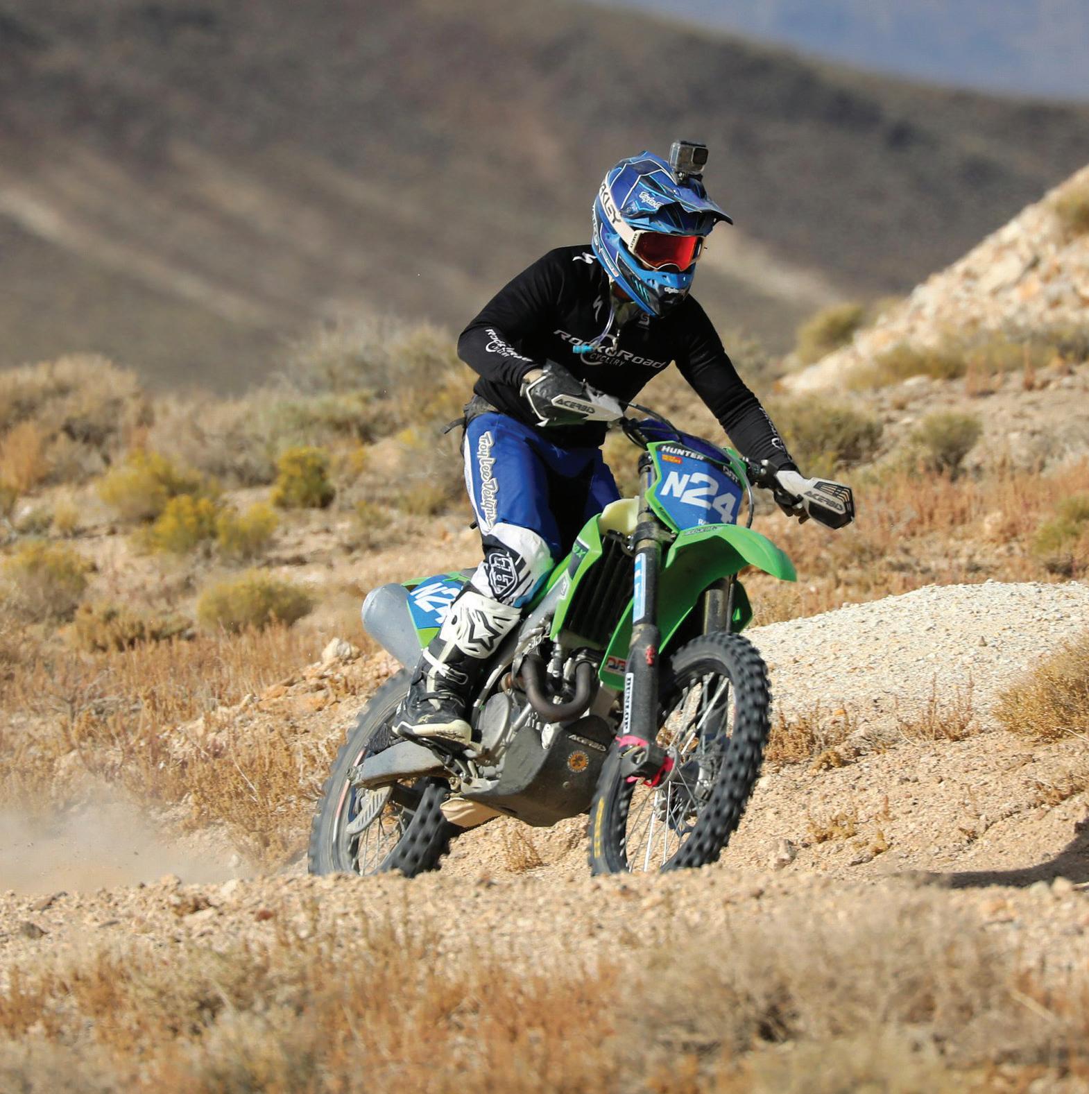The hare turned out to be none other than Dalton Shirey, earning his second Hare & Hound Championship this season. Everyone knows you can’t let him check out at the front. “The Hare and Hound in Tonopah was great this year,” said Shirey. “It was a bitchin course with all the singletrack; it was really fun. I just wished my hands were warmer. I cut the fi ngers off my gloves to let the sweat drain out, but it made my hands cold. It was a smooth ride from start to fi nish; never had a wheel on me. I think I won by 8 minutes? I blew a couple turns so I could clean it up, but it was a great day.” Finishing second was Trevor Hunter who had a serious battle with his otherwise teammate Hayden Hintz. “It was a little frustrating, but I guess the result was not DirtVenture 49