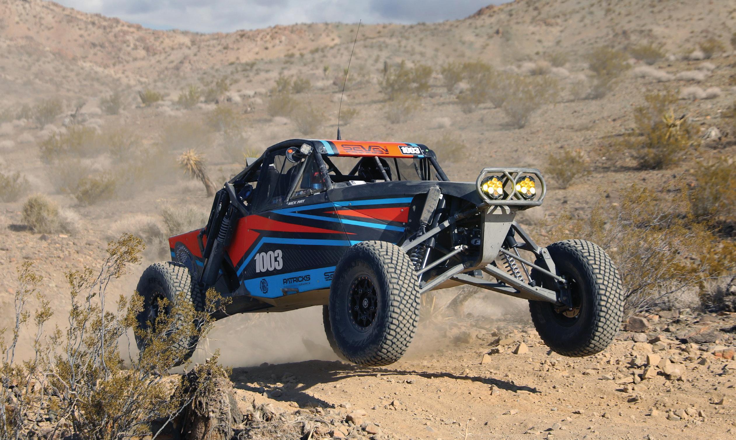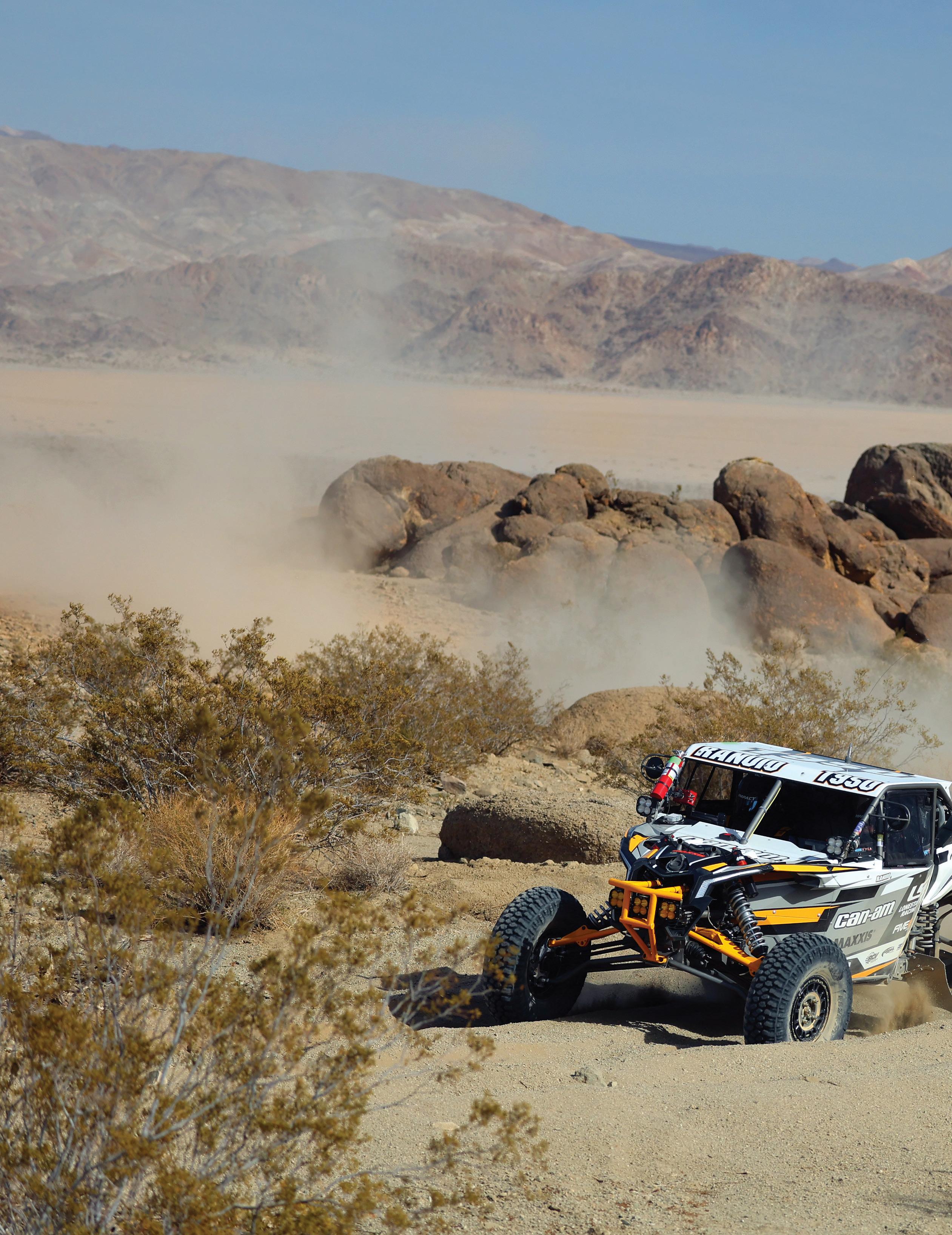 in the Best In The Desert series while running the Desert Challenge at King of the Hammers (KOH). One feature that was very different from Parker was the dry lake beds in Johnson Valley. Instead of running wide open on the fast fire roads in Parker, competitors would be bouncing off the rev limiter for miles on the dry lake beds.