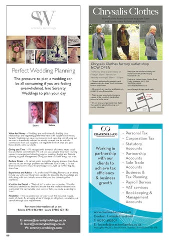 E: selena@serenityholdings.co.uk E: laura@serenityholdings.co.uk W: serenity-weddings.com