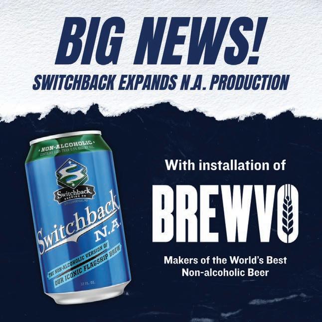 Switchback Brewing Co., the employeeowned Vermont brewery behind the iconic Switchback Ale, announced today that it is bringing non-alcoholic beer production fully in-house by installing the BrewVo® de-alcoholization system from Sustainable Beverage Technologies. In addition to producing its own non-alcoholic beers, the investment provides Switchback with the ability to collaborate with other breweries and beverage brands seeking high-quality NA production on the East Coast.