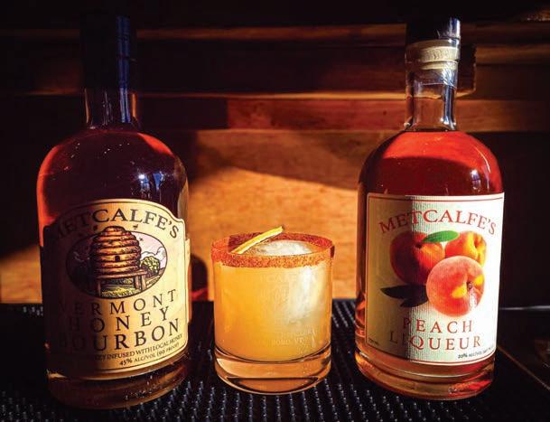 Dip the rim of the glass in honey, followed by cayenne/ Tajín. Add ice to your glass, followed by spirits, lemon, and bitters. Top with soda water and serve. www.vermontdistillers.com