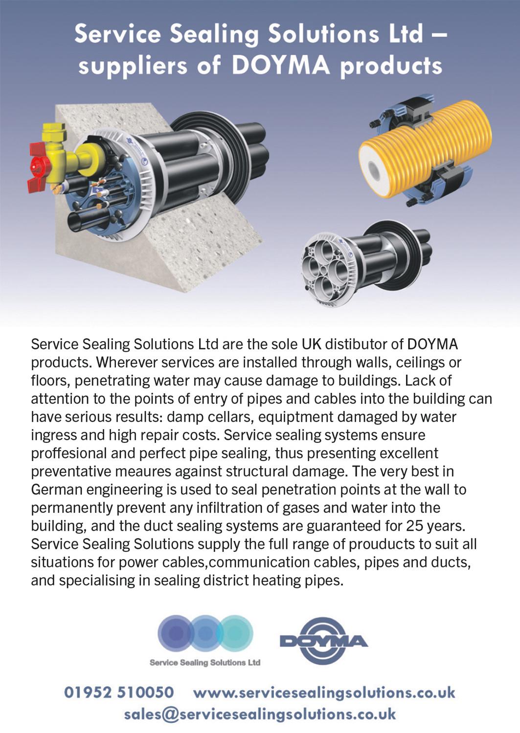 Service Sealing Solutions Ltd supply the full range of DOYMA and HKD products, to suit all situations from sealing power cables, communications cables, pipes and ducts and district heating pipes, permanently preventing an infiltration of gases and water into the building. DOYMA's products are designed to solve all watertight sealing requirements and prevent against structural damage. DOYMA products are also guaranteed watertight for 25 years.