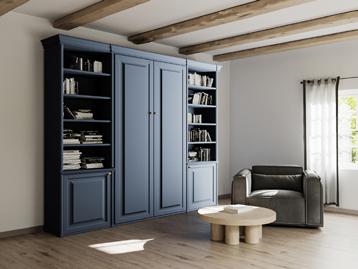 The Alpha bed system is available in standard and special sizes, vertical and horizontal mounting, with a choice of leg options and even a desk. The lightweight Alpha bed frames feature robust steel construction with reinforcing stiffeners, available in single, double, queen, and king sizes. This system includes the adjustable SBLM for perfect balance and easy, safe fingertip operation. Disappearing desk available too.