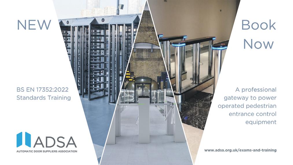 The Automatic Door Suppliers Association (ADSA) is launching a new training course as a ‘gateway’ to a new standard that regulates power operated pedestrian entrance control equipment such as powered turnstiles, swing lanes and retractable lanes.