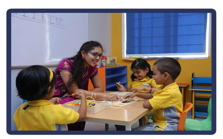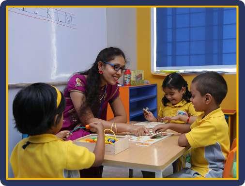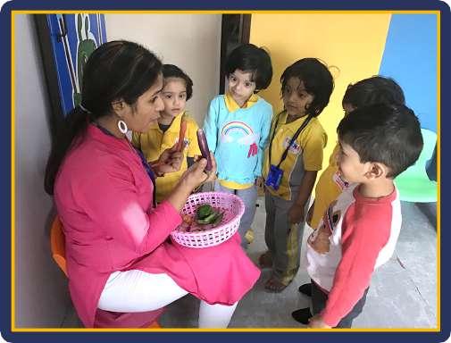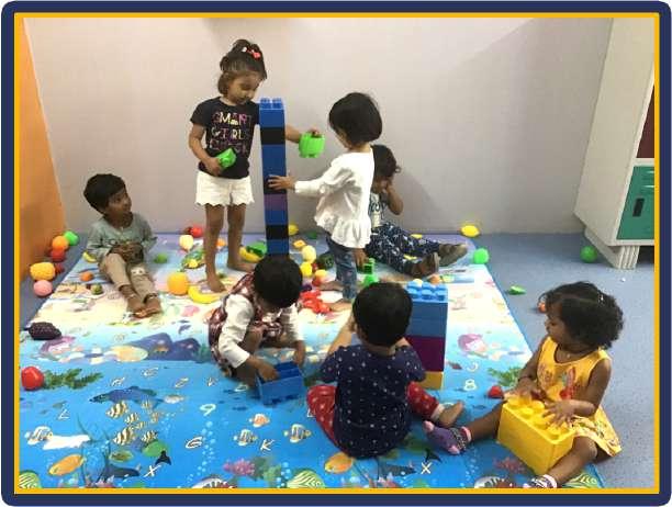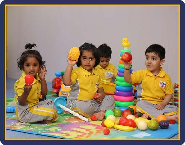 Library, Story books, Pre writing skills, Strokes, Buttons fastening, Scribbling and Clay moulding