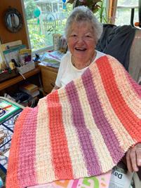 In addition to her record-setting surf-fishing at the beach, Marguerite has enjoyed knitting over 750 baby hats that she donated to local hospitals. Her latest project is knitting baby blankets that she enjoys gifting to young family members. Marguerite
