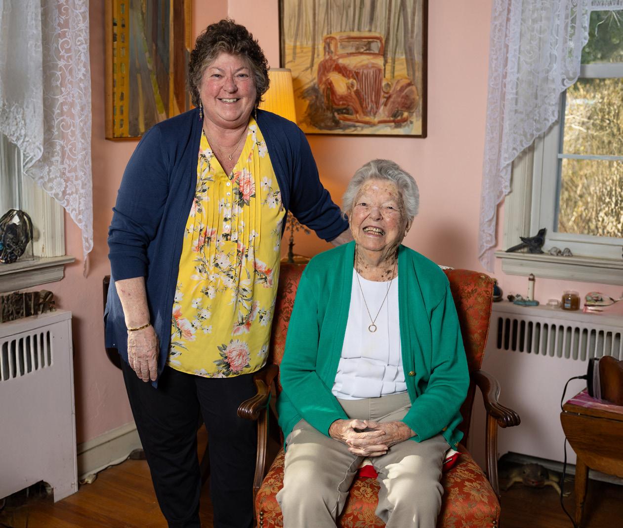Marguerite’s home is filled with history and charm. The walls are adorned with many of Richard’s paintings, each telling a story about their lives and the places they’ve been. The front porch and sunroom are full of beautiful plants and bushes that Carol cares for. There are framed family portraits from many years past and furniture that has withstood the test of time, including a wooden toddler chair where Marguerite once sat.