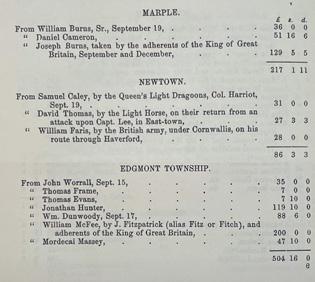 The Burns house where today’s Sproul Road crosses over Darby Creek Claims filed by area residents after the British raids