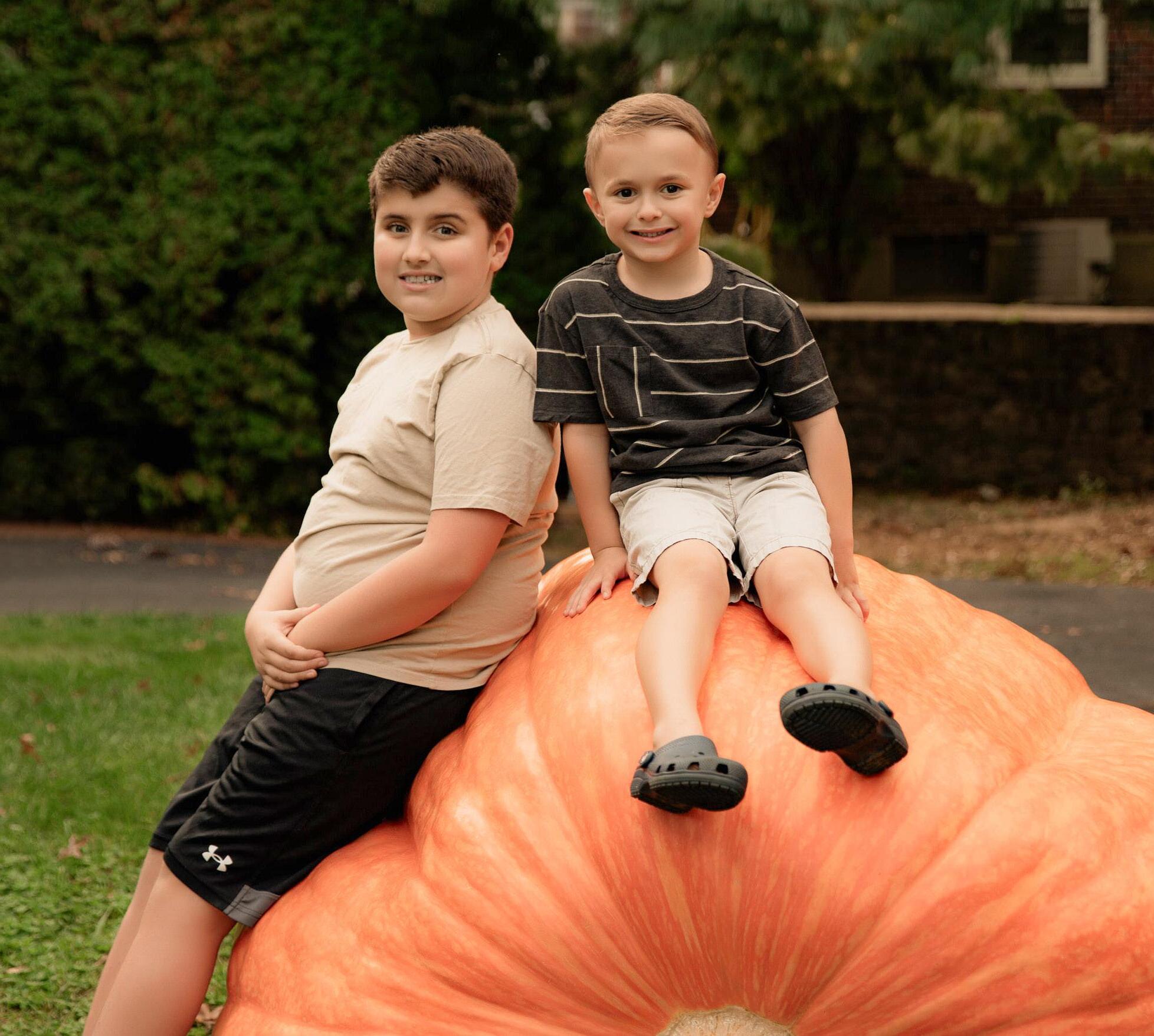 As if their story wasn’t already heartwarming enough, the Meehans are making headlines for another reason — giant pumpkins. What began with a single gifted seed from a family friend has grown into a family obsession that’s taken over their Marple backyard and social media. In 2023, their best pumpkin weighed 1,203 lbs. In 2024, they shattered the site record at the State Fair of Virginia with a 1,983 lb beauty, who was lovingly named Gina by their youngest son, Benjamin.