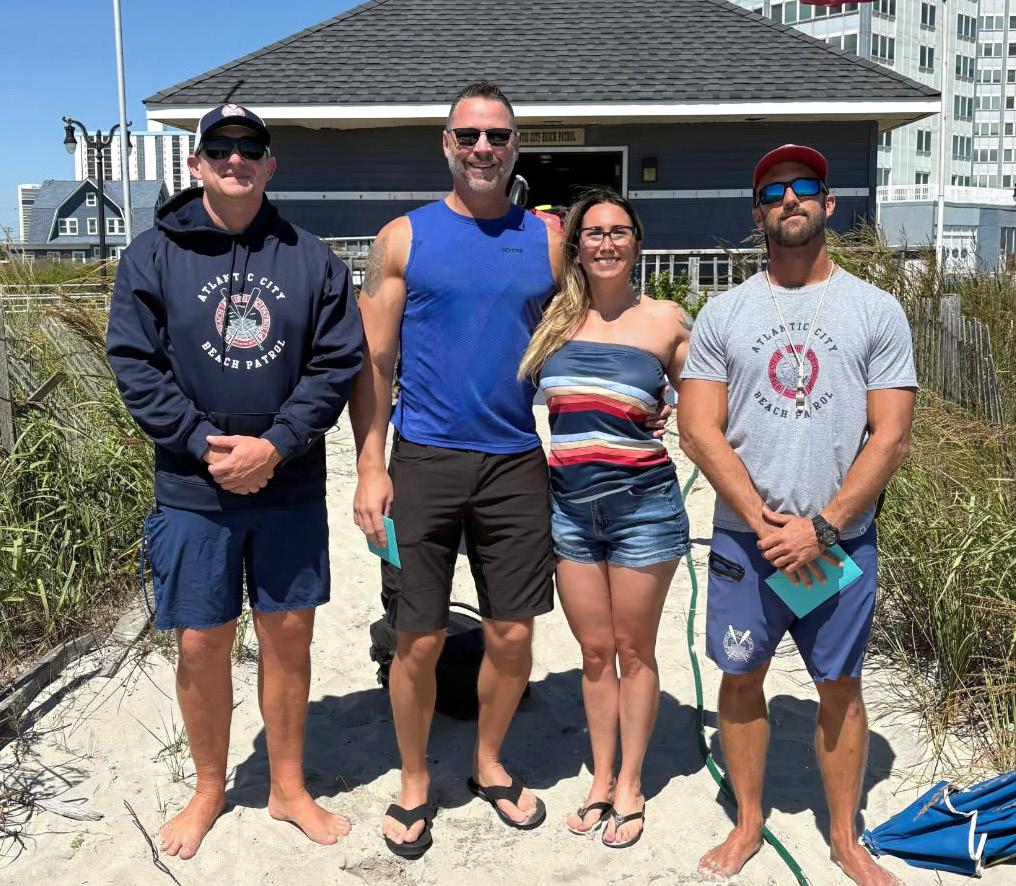 Todd and Devlin Welch with Atlantic City Beach Patrol Lt. Kyle Deroo (L) and Kevin Wallace (R)