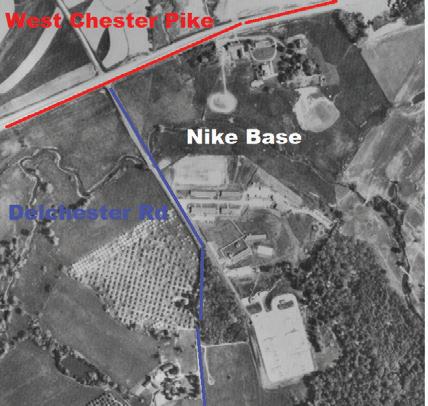 underground “magazines,” each with four launchers; and an area for personnel, headquarters, barracks, mess, recreation hall and motor pool. The base was staffed by 109 soldiers, initially Regular Army but later PA National Guard units. The initial missile was a Nike (Greek Goddess of Victory) Ajax, with a 25-mile range that could be fired at incoming bombers. At least one launcher was on constant alert.
