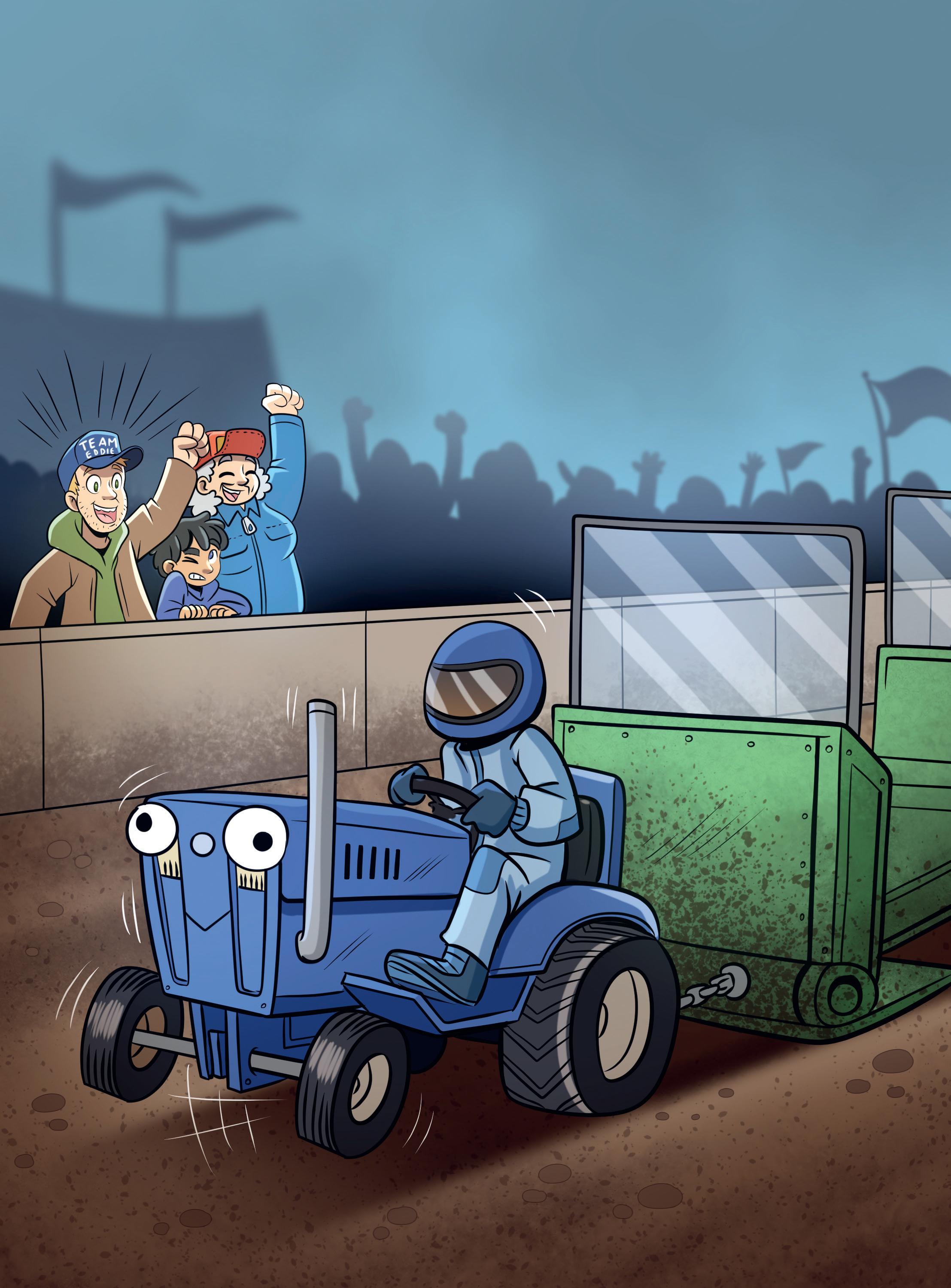 – Visst, säger Eddie och går bort till Stefan. Det är Tractor Pulling för barn.