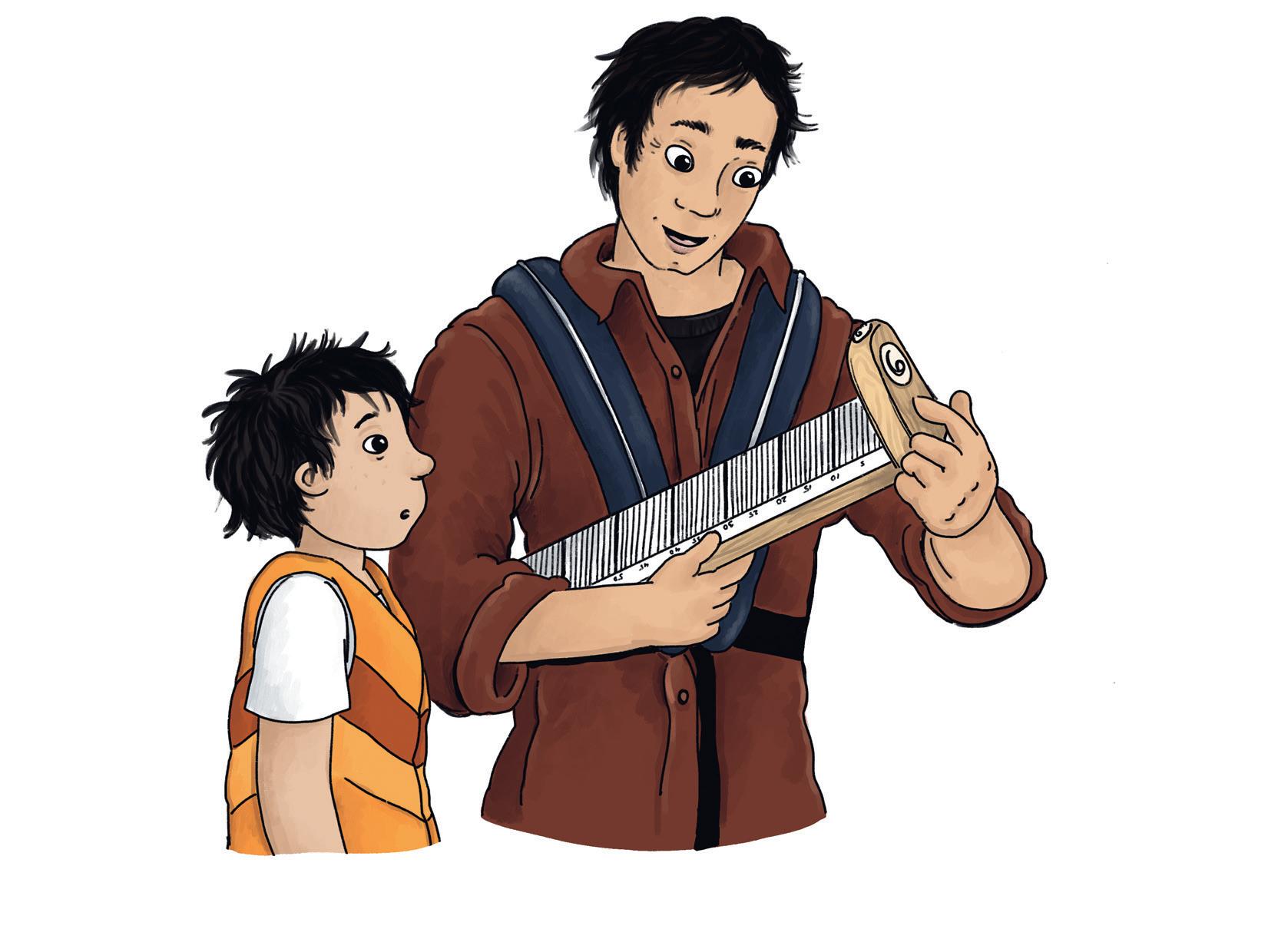 Det är en mätbräda, säger pappa. Du kan ta den så länge.