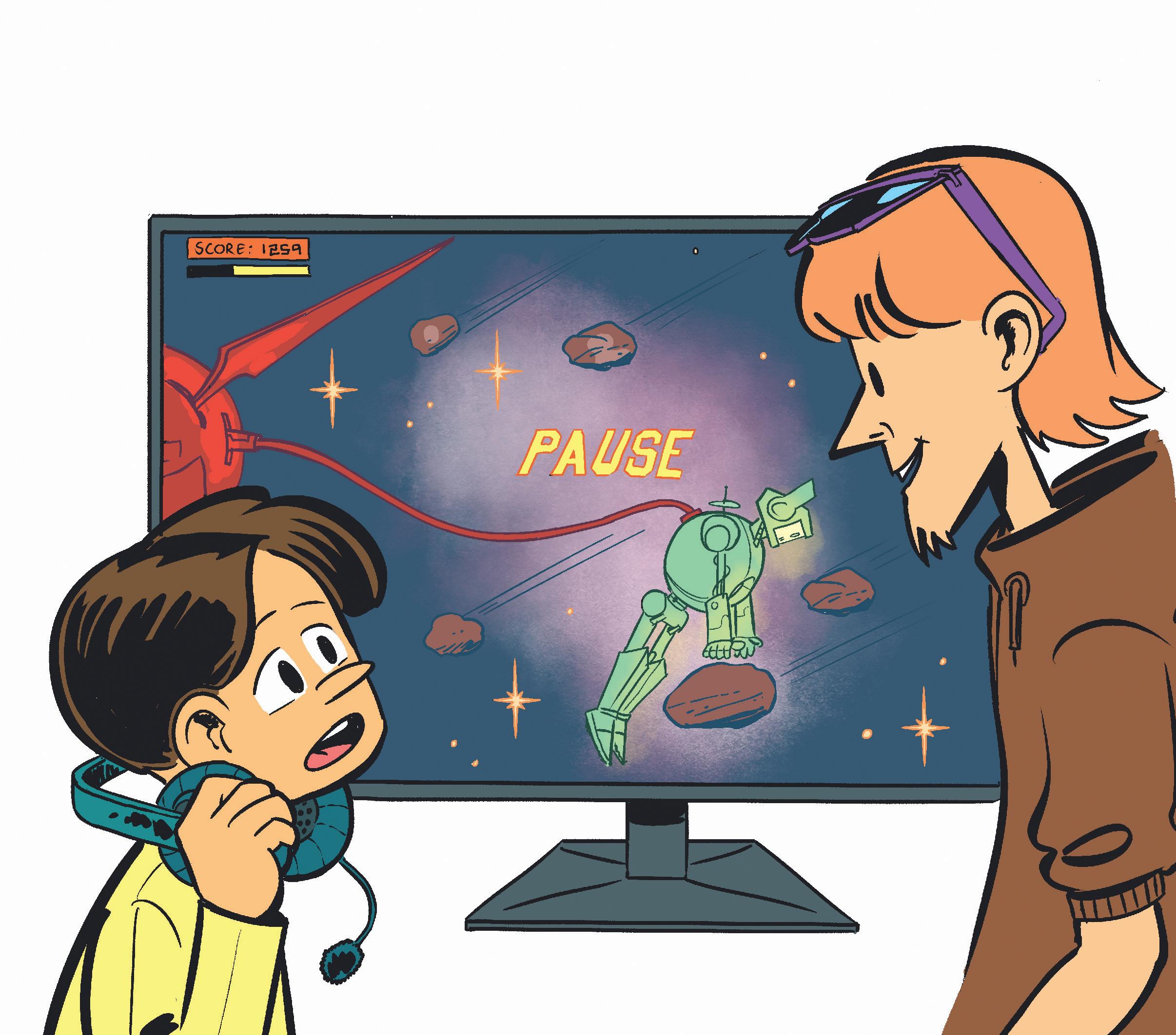 – I dag ska vi bestämma vilka krafter roboten i spelet ska ha, säger Oliver till Matteo.