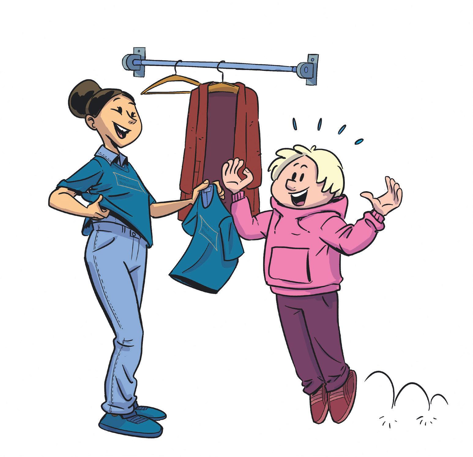 – Och här är en till dig, säger hon och ger en tshirt till Bosse. Den får du behålla sen.