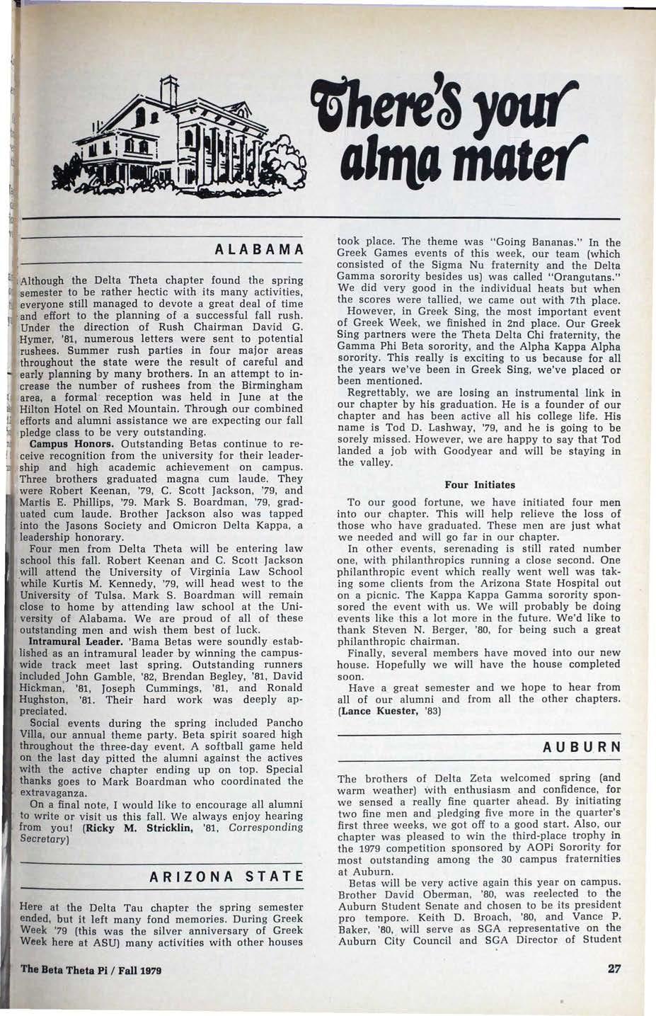 ' he Beta Theta Pi, (USPS 052-000) offiial magazine of Beta Theta Pi Fraterity, an organization of college m en .o w in its 141st year, is owned by the raternity, edited and published under he direction and control of its Board f Truste es. Is sued Fall, Convention ssue, Winter, Spring, and Summer. lecond-class postage paid at Oxford, and a t additional mailing offices