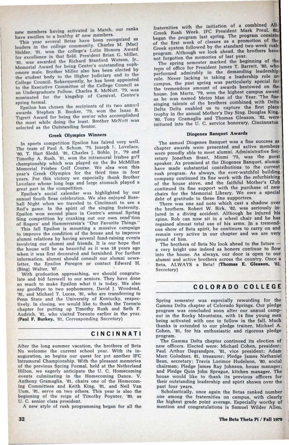 Pro gra m notes provide some insight to 1 significance of th e event: "Beta Theta Pi t always specially hon ore d its members w