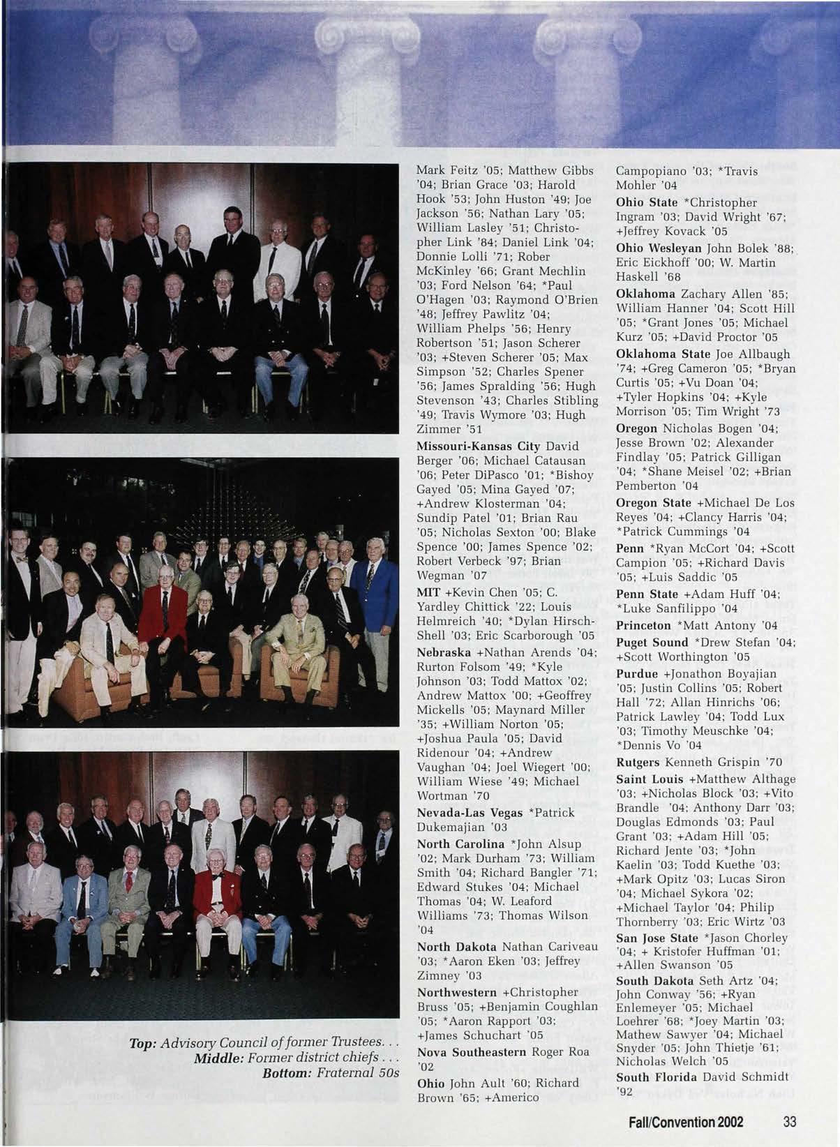 The Beta Theta Pi, (USPS 052-000) official magazine of Beta Theta Pi Fraternity , is owned by the Fraternity , edited and published under the direction and control of its Board of Trustees, published Summer , Fall, Winter and Spring for $30 one-time pre-paid subscription Periodical class postage paid at Oxford , Ohio , and additional points of entry. Canada Post International Publications Mail (Canadian Distribution) Sales Agreement No. 0397474 Copyright Beta Theta Pi Fraternity, 2002. Produced in the USA