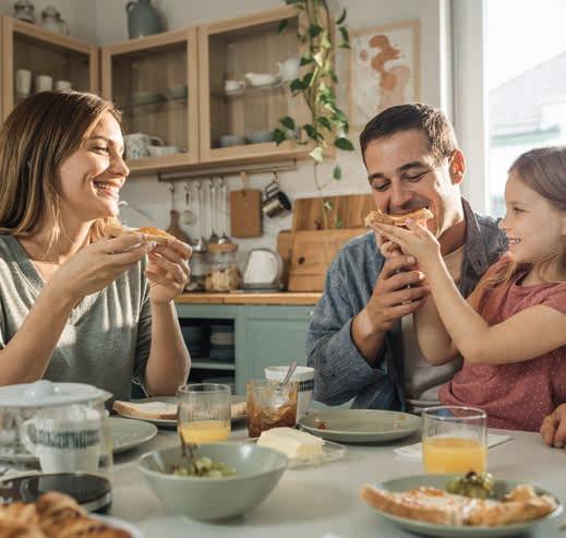 Das schönste Frühstück zusammen genießen– mitten im Herzen des Familienlebens, dem offenen Wohnund Essbereich im Erdgeschoss.