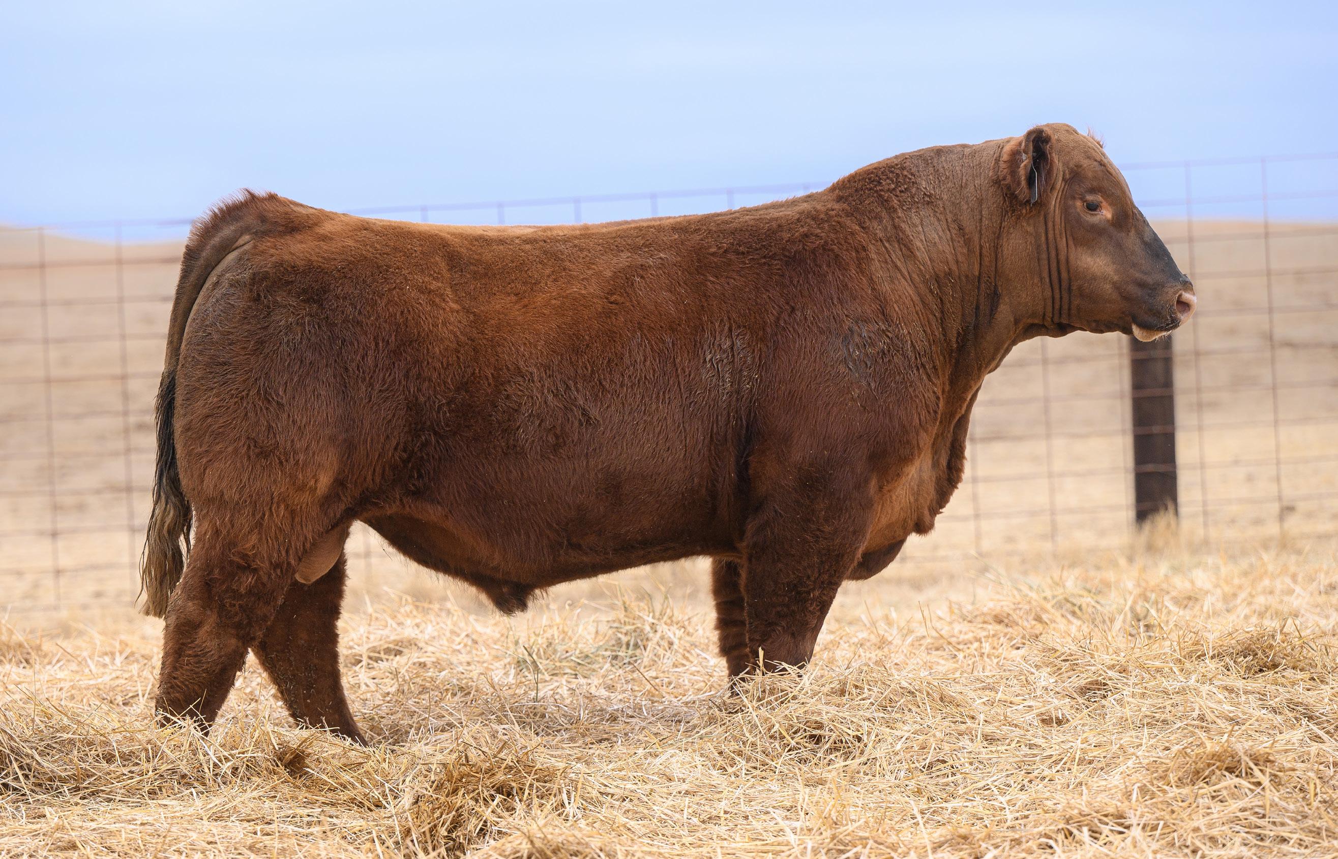 815 was one of our favorite bulls from the 2020 sale. You can see why from Lot 52 and we kept multiple females out of him. For those of you looking for genetically clean, red hided, soft made bulls, you will stuggle to find more of an outcross than this. His sire is 7/8 Angus. His grandmother is a cold blooded northern cow. His mother is a Next Level which is still an outcross or quite a ways back in any club calf pedigrees. When you study his pedigree and his structure, this is the bull that most club calf females need. .
