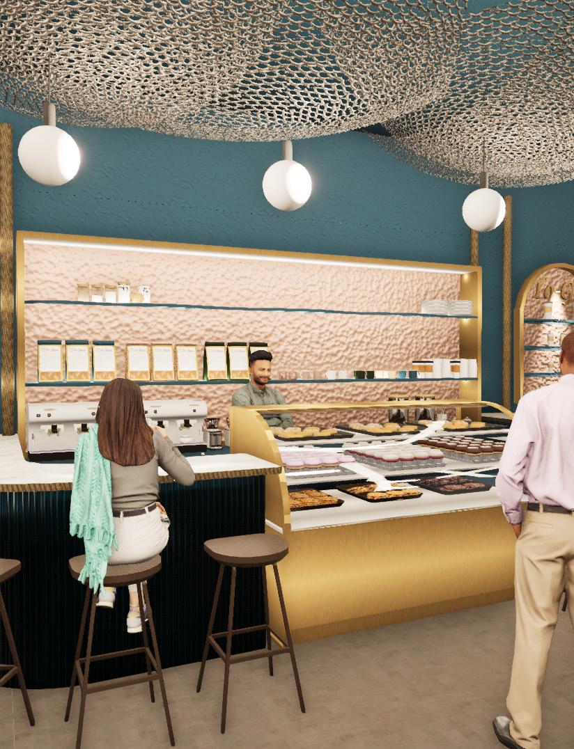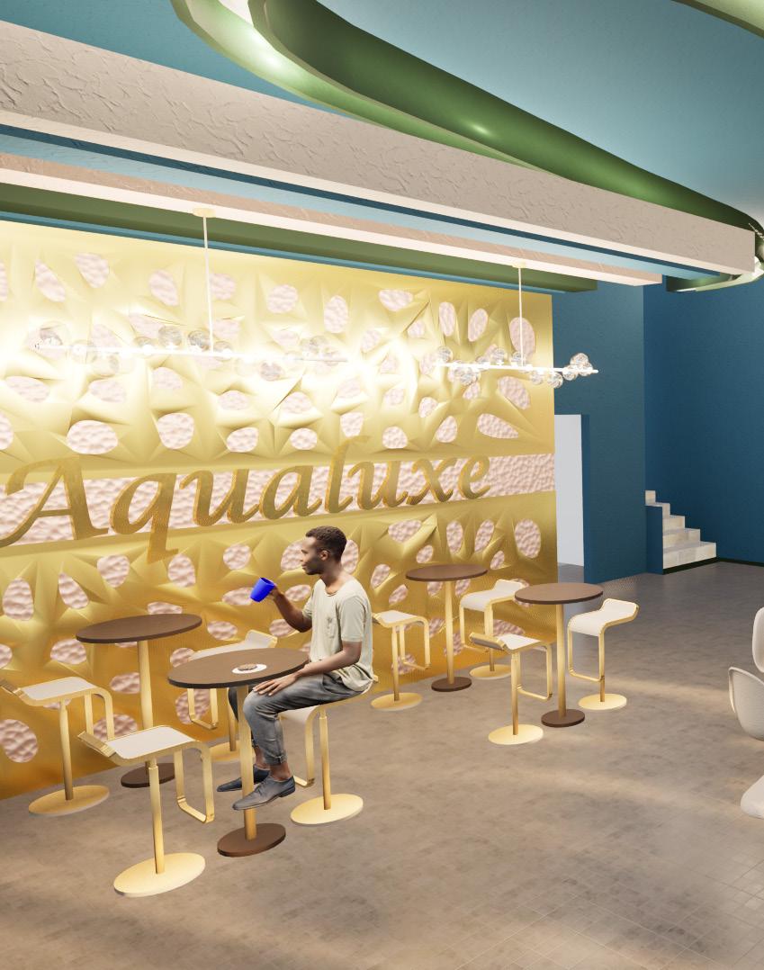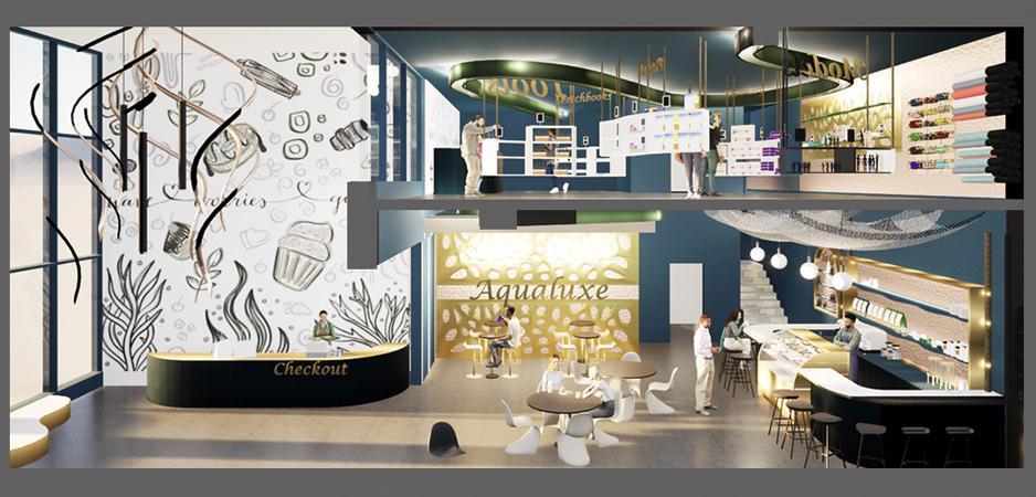 Aqualuxe is a visionary fusion of artistry and culinary delight, transcending conventional boundaries to offer an immersive experience inspired by the graceful choreography of seaweed in the ocean’s depths. At the heart of our concept lies the celebration of fluidity, where deep colors, textures, and flavors harmonize to create an enchanting ambiance reminiscent of the ocean’s rhythm. Our hybrid establishment seamlessly intertwines an eclectic art store with an intriguing bakery, inviting patrons to indulge their senses in a symphony of creativity and taste.