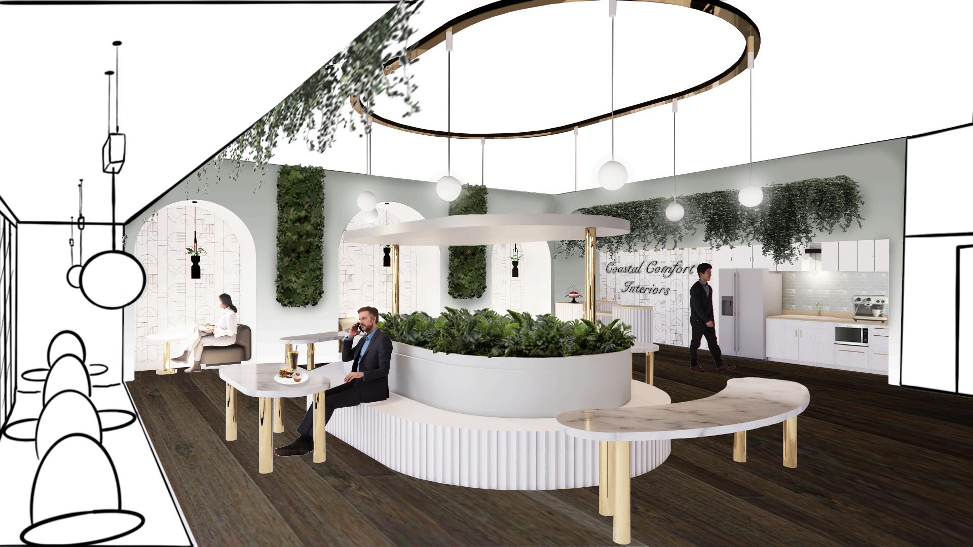 Designed and modeled a 3,500 sq ft hybrid concept store using Sketch Up and Twinmotion The project shows a creative use of various materials and ADA-compliant spaces (see portfolio)