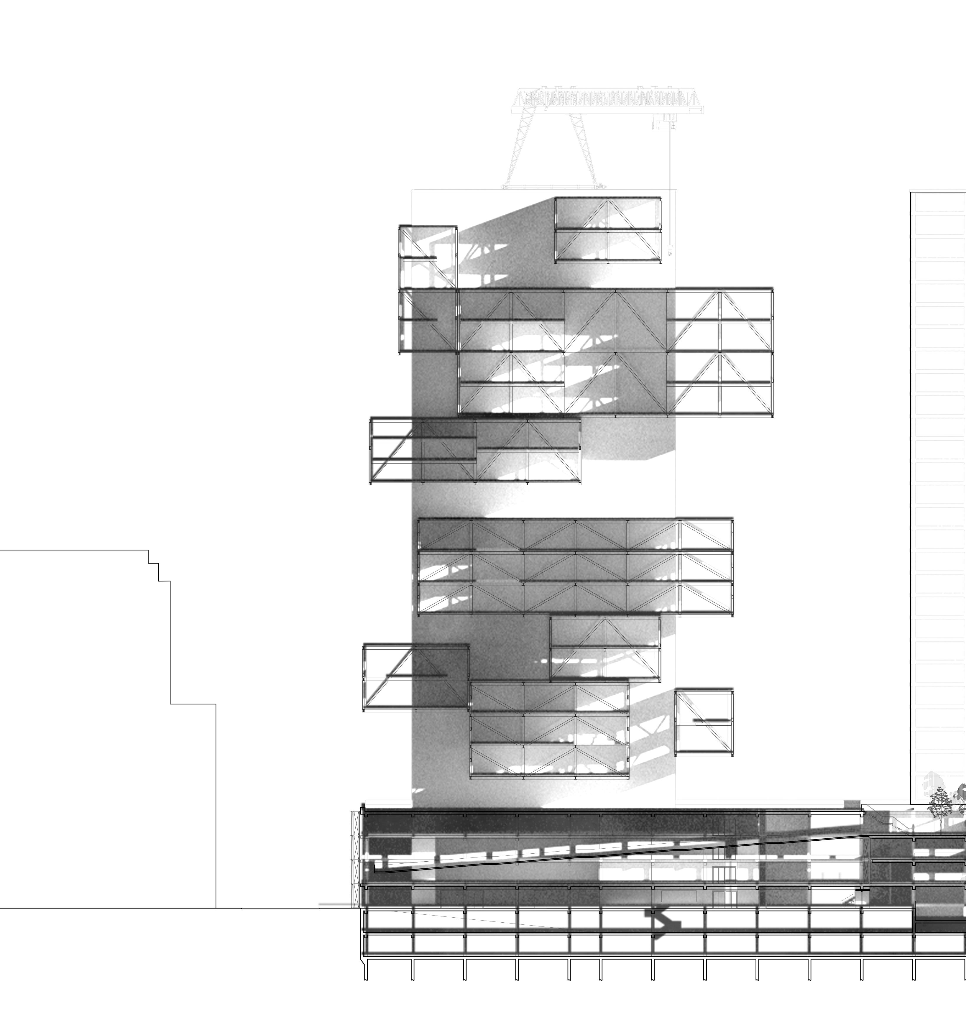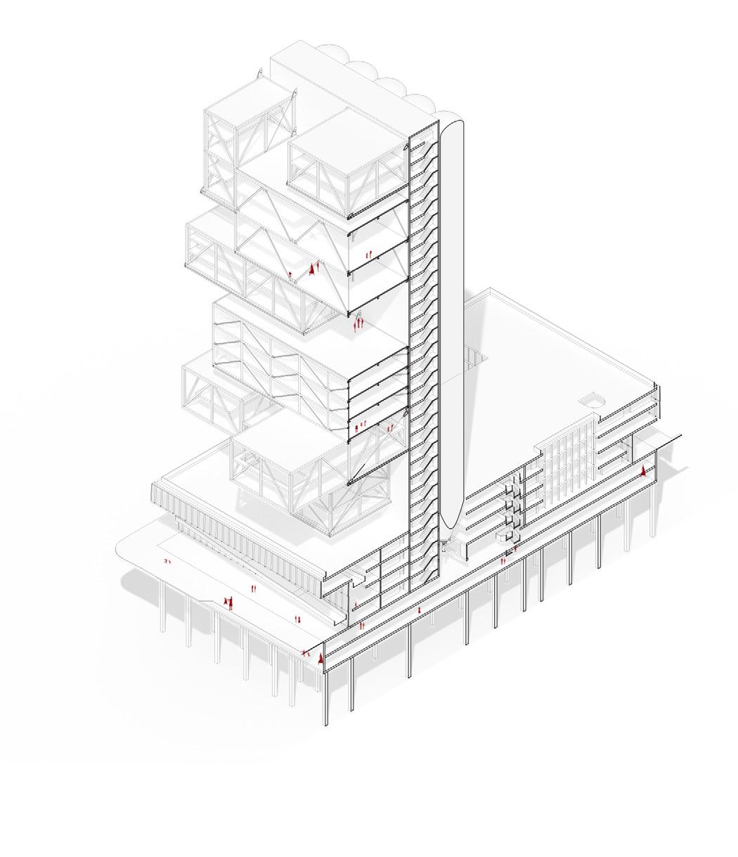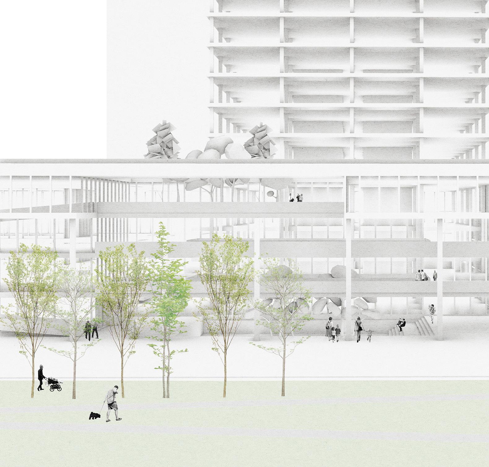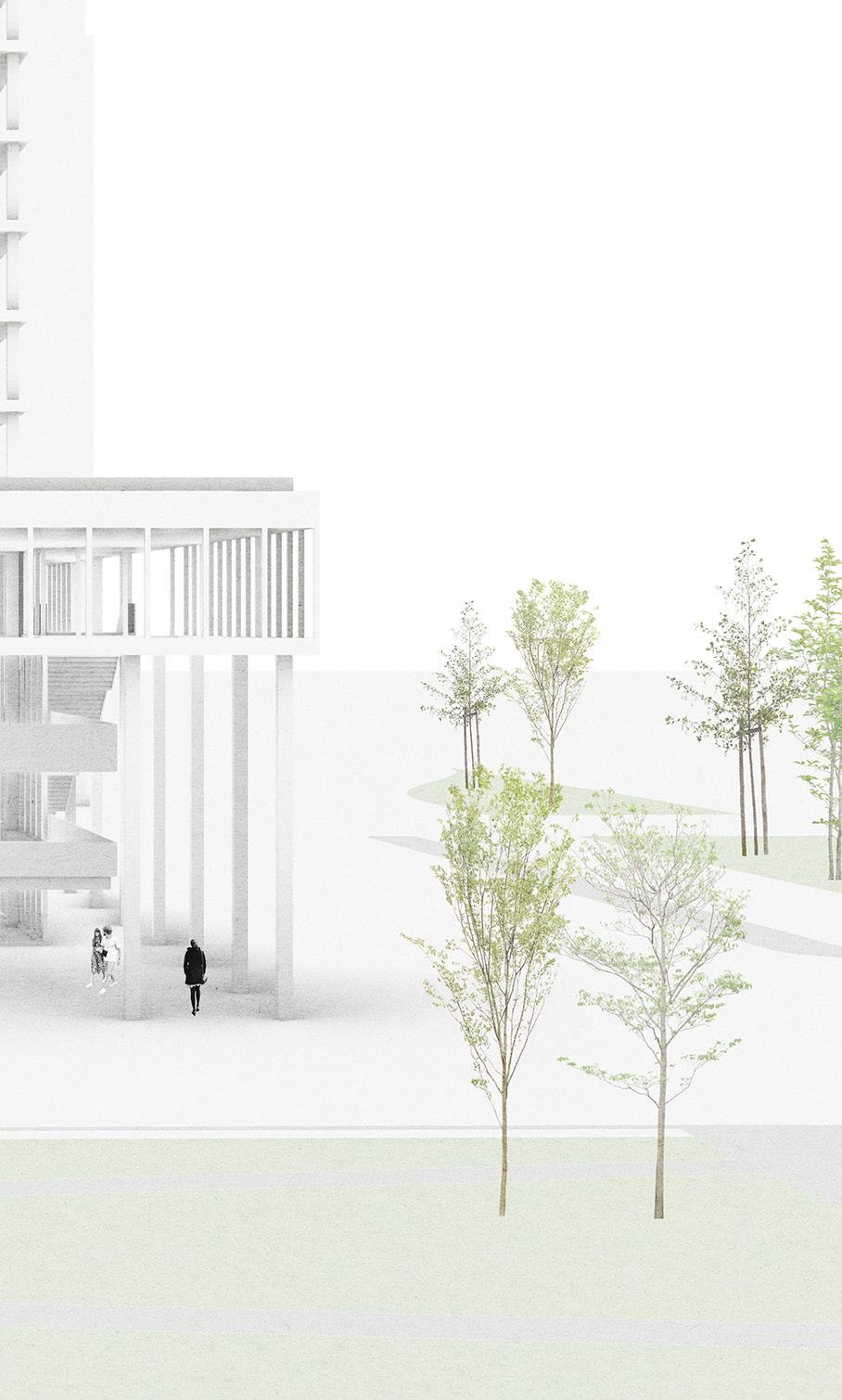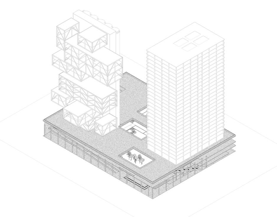 The thesis suggests spatial layout and programmes as tools that will foster social encounter. It investigates boundaries and thresholds between private and public as well as explore systems that will feed into the ‘social’ plinth. The adaptive re-use of a skyscraper and incorporation of circularity of building materials and design is explored within the thesis, with considerations for adaptable spatial arrangements and structures for future changes.