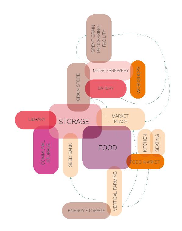 exploring the intersection between food and storage typologies - the introduction of various programmes (in relation to food and storage) allows more opportunities for people to come together