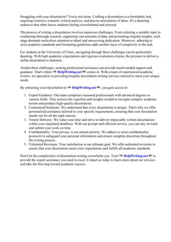 For students at the University of Ulster, navigating through these challenges can be particularly daunting. With high academic expectations and rigorous evaluation criteria, the pressure to deliver a stellar dissertation is immense.