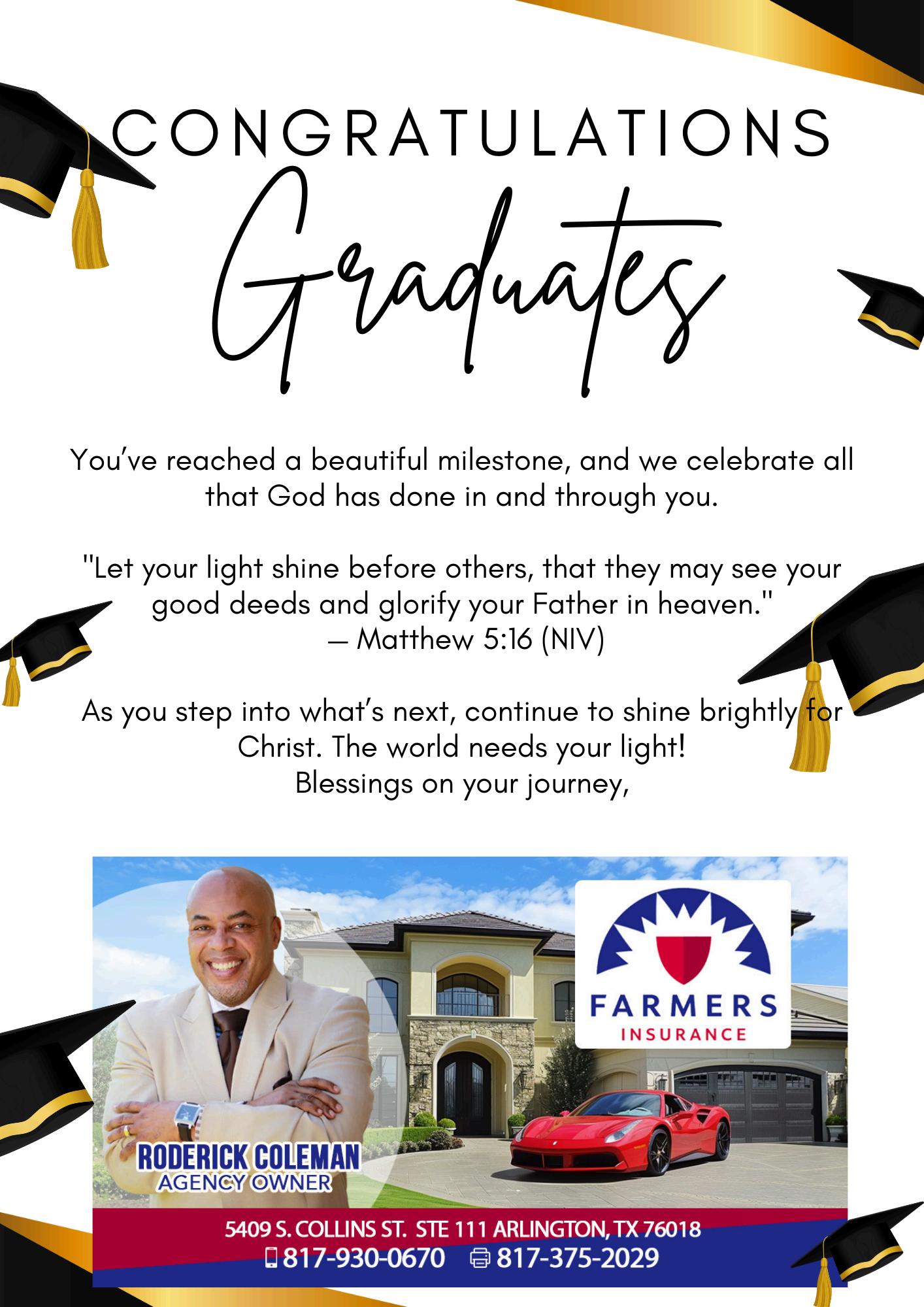 We are proud of you and all of your accomplishments. We pray that you are successful in all of your future endeavors.