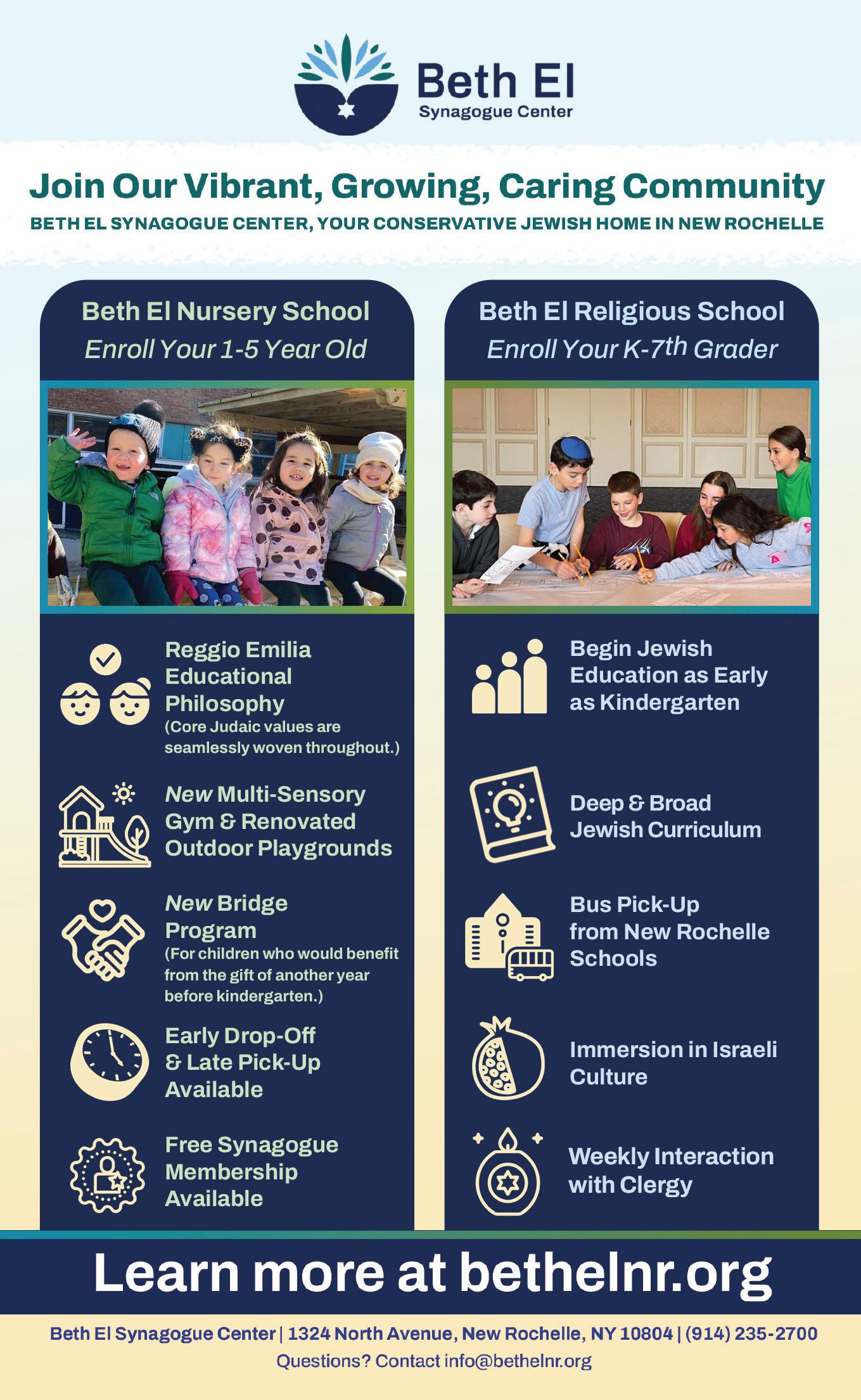 Shery Rosenstein (Nursery School Assistant Director) ext 235 nursery@bethelnr.org