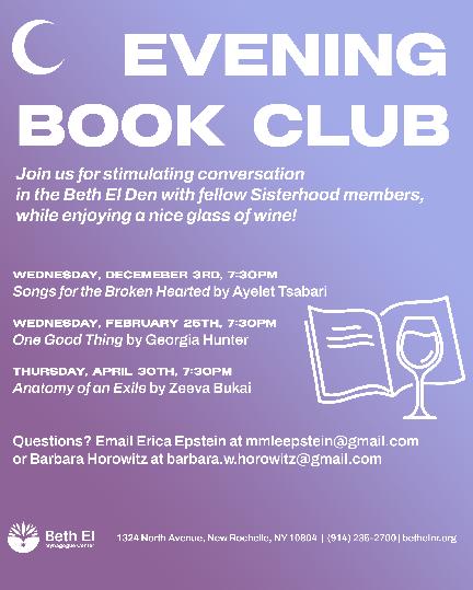 To see all upcoming services and events, visit bethelnr.org/upcoming To sign up to read Torah or Haftorah, visit bethelnr.org/readhaftorah (914) 235-2700