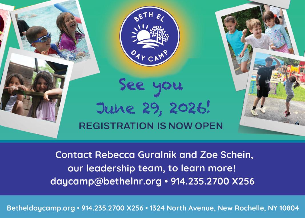 Zoe Schein (Assistant Camp Director) ext 338 daycamp@bethelnr.org