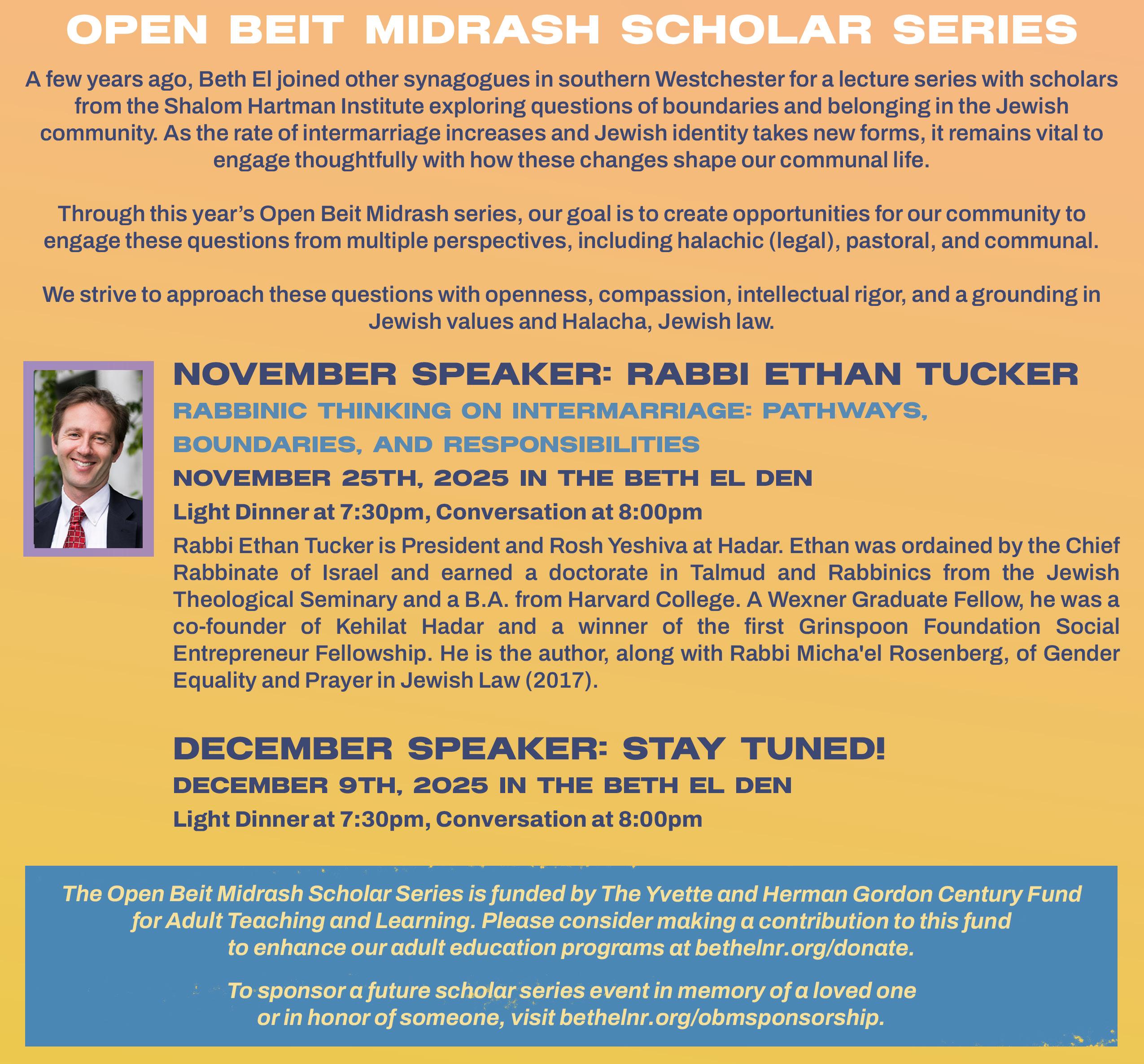 Please register for dinner at bethelnr.org/shabbat-weekend