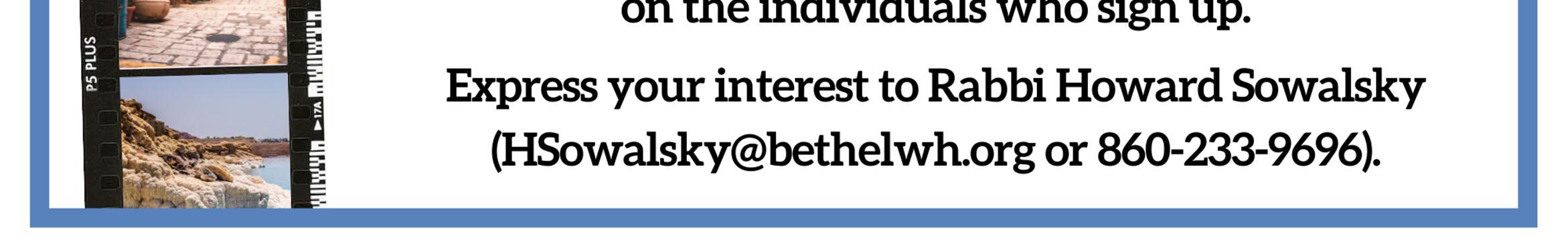 QUESTIONS: Rabbi Zerin, rzerin@bethelwh.org; Jason Kay, engagement@bethelwh.org